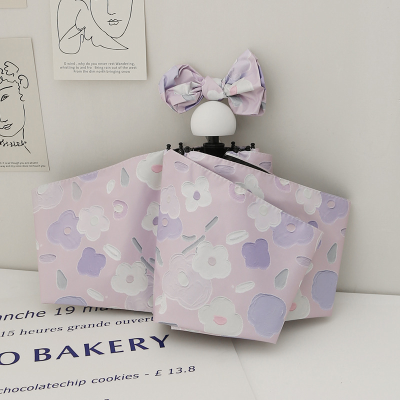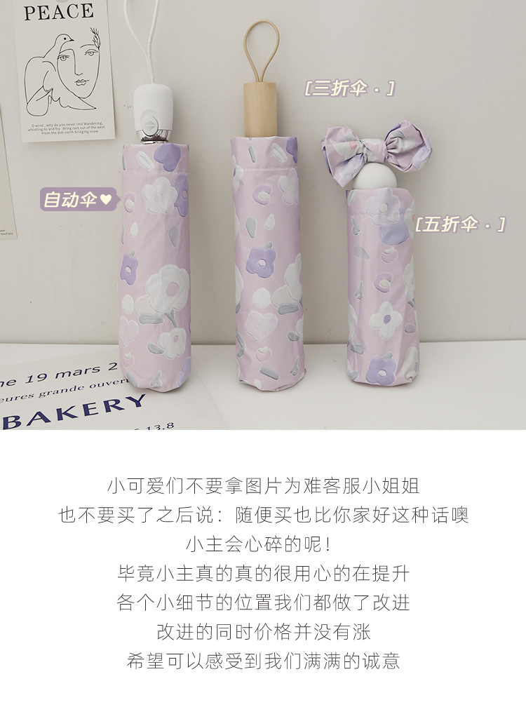 ✅ 보라색 유화 꽃무늬 태양 우산, 완전 자동 우산, 비닐 자외선 차단제, 자외선 차단제, 비 또는 빛 접이식 우산, 승인 가능