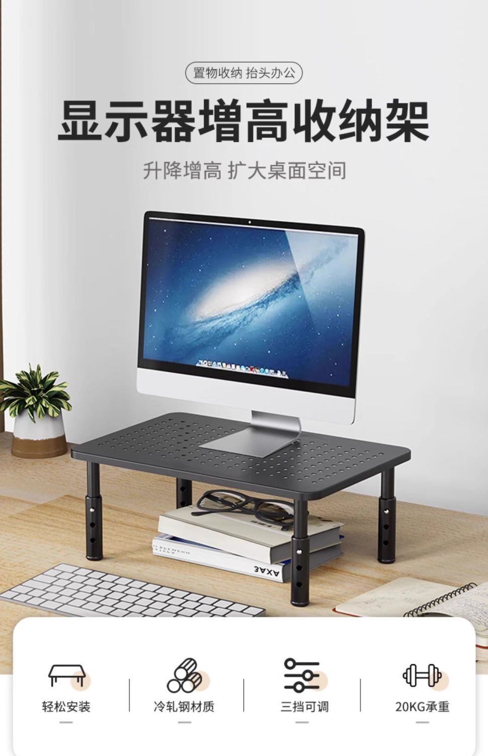 모니터 컴퓨터 스탠드 보관함 리프팅 노트북 데스크탑 베이스 선반 높이 조절 스탠드