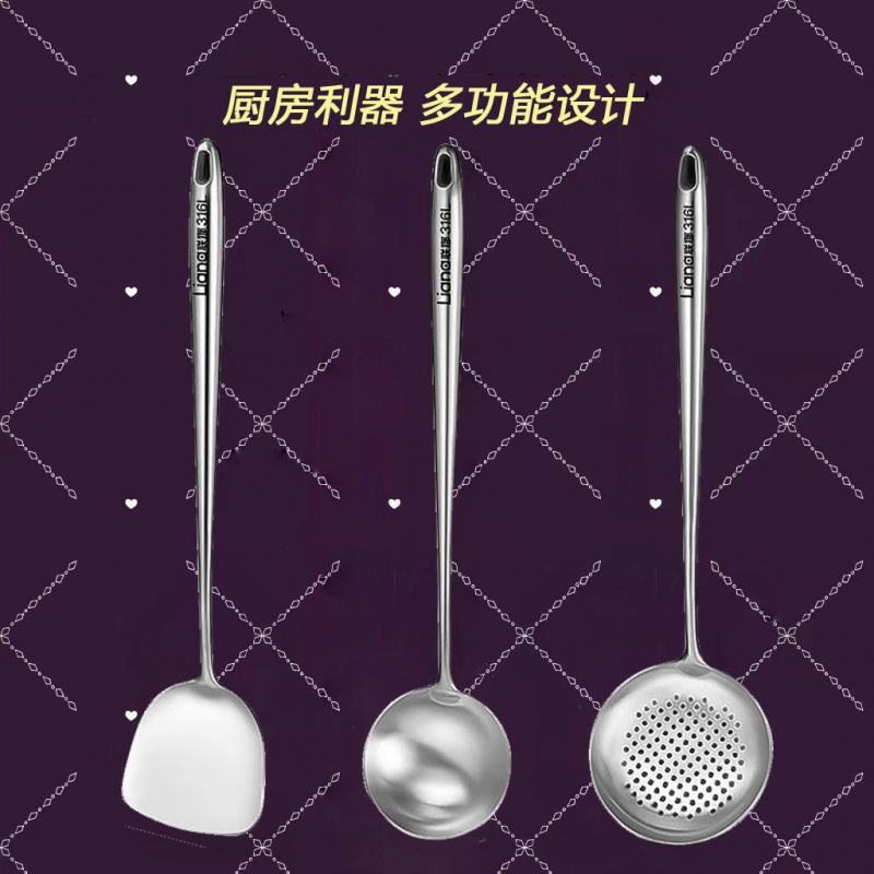 스테인레스 스틸 세트 프라이팬 주걱 두꺼운 화상 방지 튀김 소쿠리 가정용 확장 주걱 긴 손잡이 요리 주걱