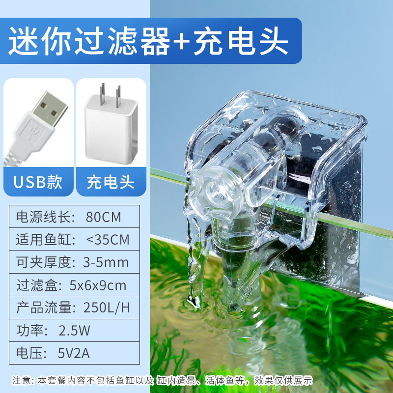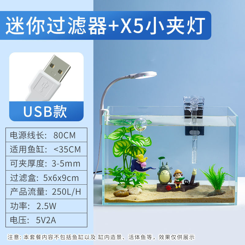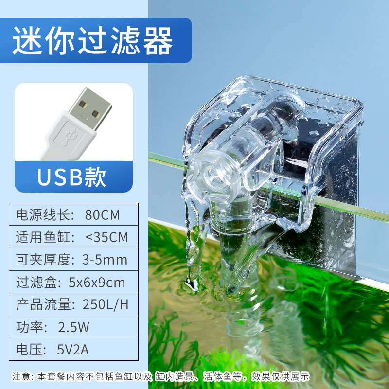 미니 어항 필터 3 대 1 USB 필터 벽걸이 폭포 산소 공급 작은 물 펌프 어항 청소