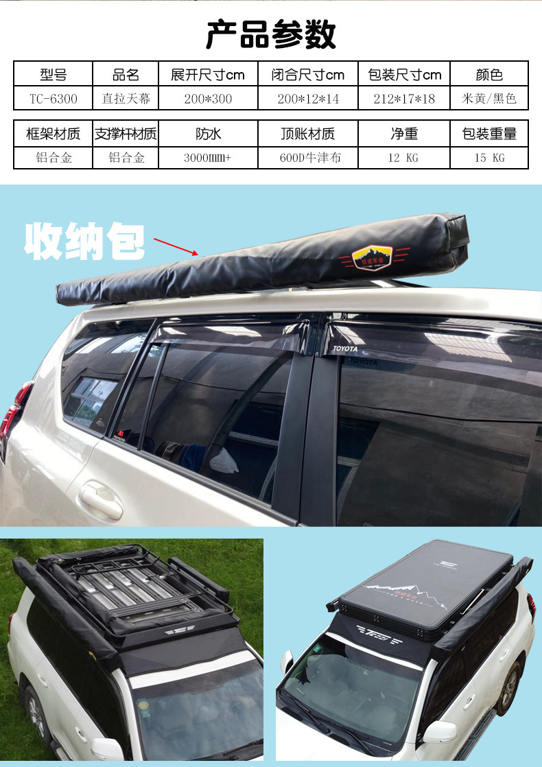 차량용 텐트, 직선형 차양막, 크로스보더 SUV 차량용 텐트, 캠핑용 알루미늄 합금 옥스포드 천 방수 텐트, 야외 방풍스토어 가기