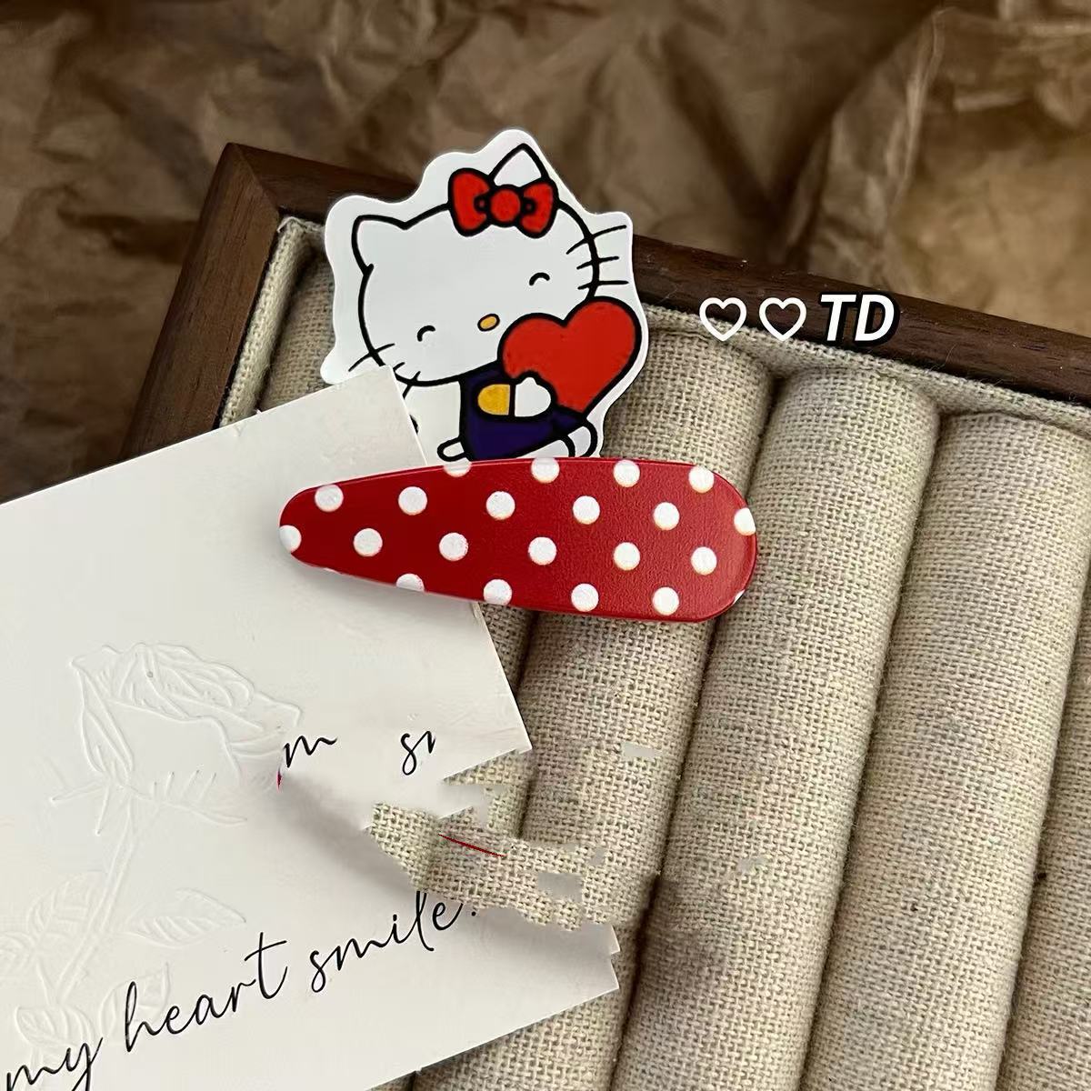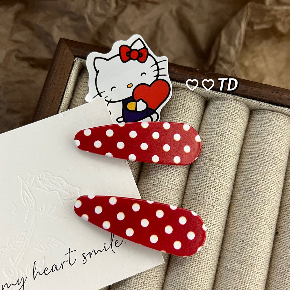 한국 학생 체리 레드 폴카 도트 소녀 귀여운 빨간 격자 무늬 머리핀 학생 BB 클립 부드러운 자매 앞머리 헤어 액세서리스토어 가기
