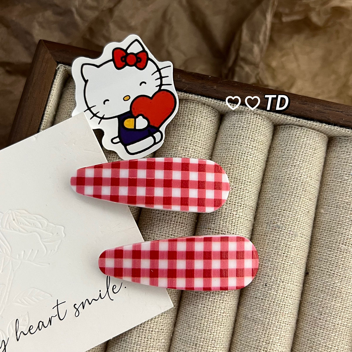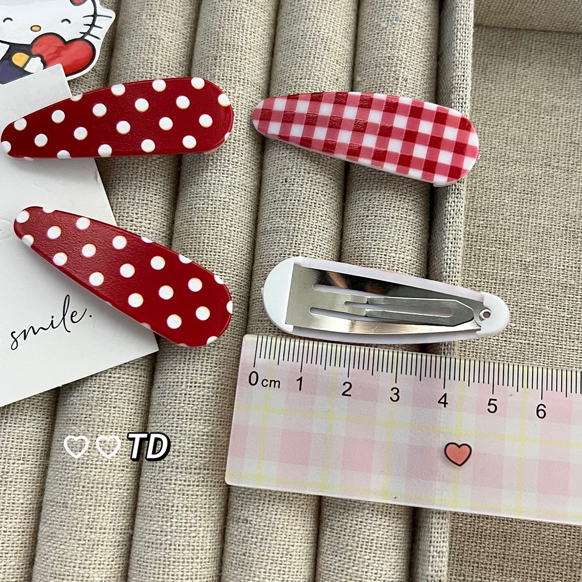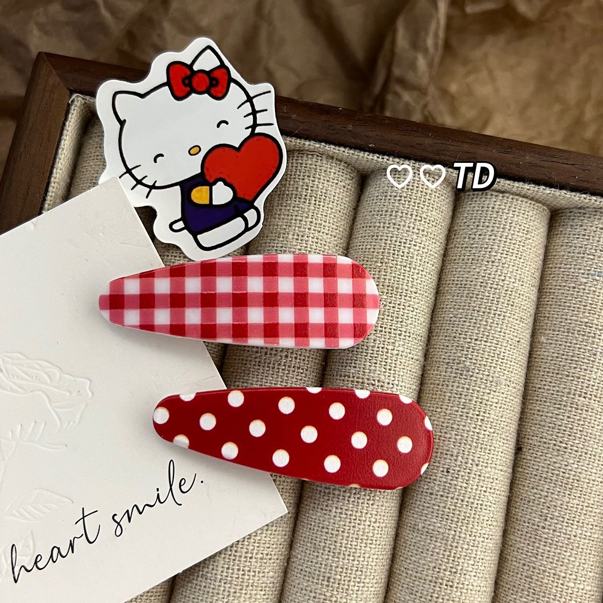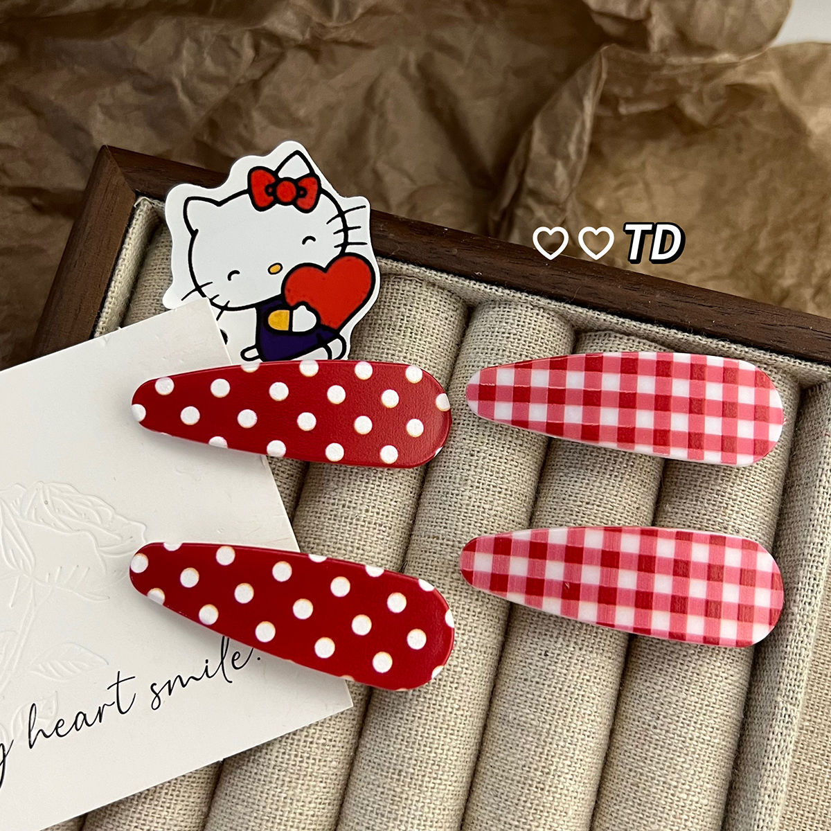 한국 학생 체리 레드 폴카 도트 소녀 귀여운 빨간 격자 무늬 머리핀 학생 BB 클립 부드러운 자매 앞머리 헤어 액세서리