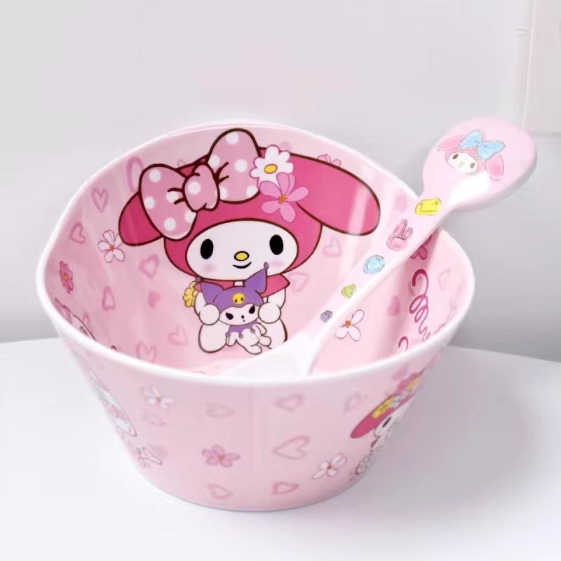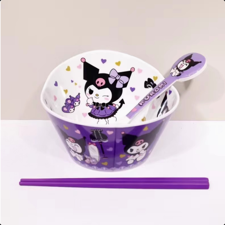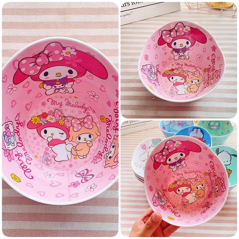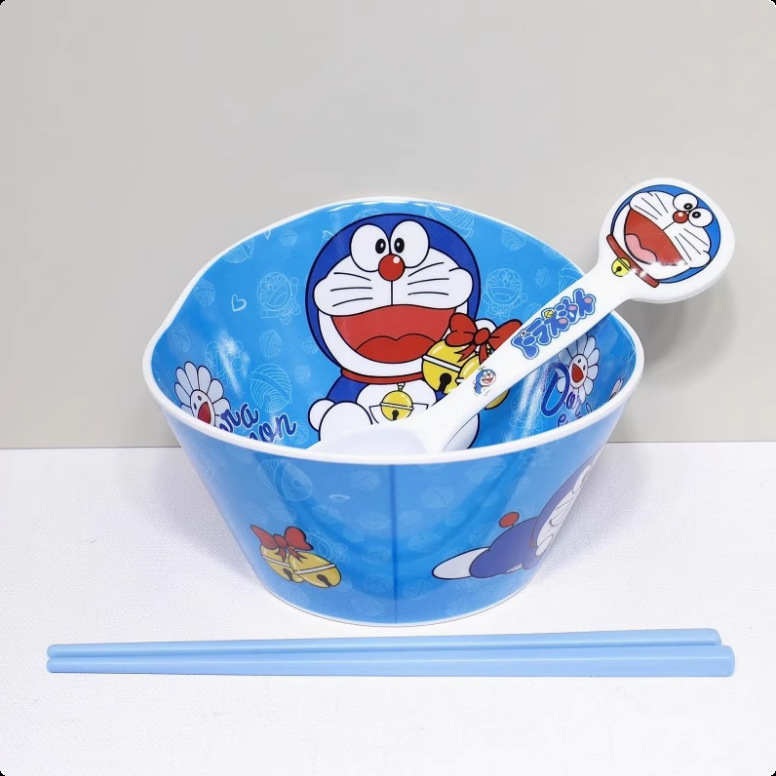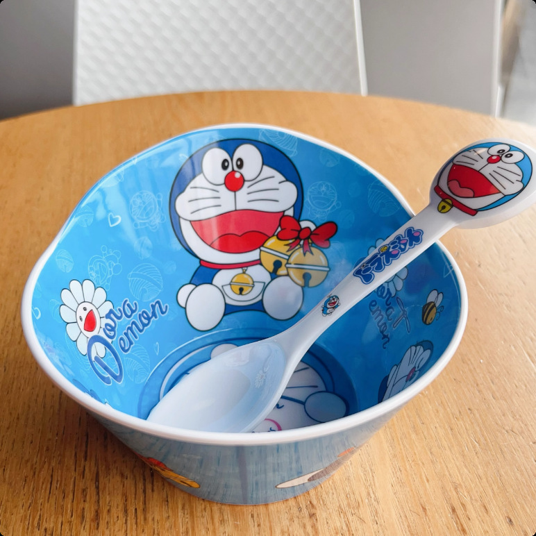 학생과 어린이를위한 만화 멜라민 이유식 국수 그릇 시리얼 그릇 대형 밥 그릇 수프 그릇 낙하 방지 그릇 숟가락 젓가락스토어 가기