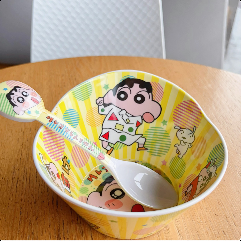 학생과 어린이를위한 만화 멜라민 이유식 국수 그릇 시리얼 그릇 대형 밥 그릇 수프 그릇 낙하 방지 그릇 숟가락 젓가락