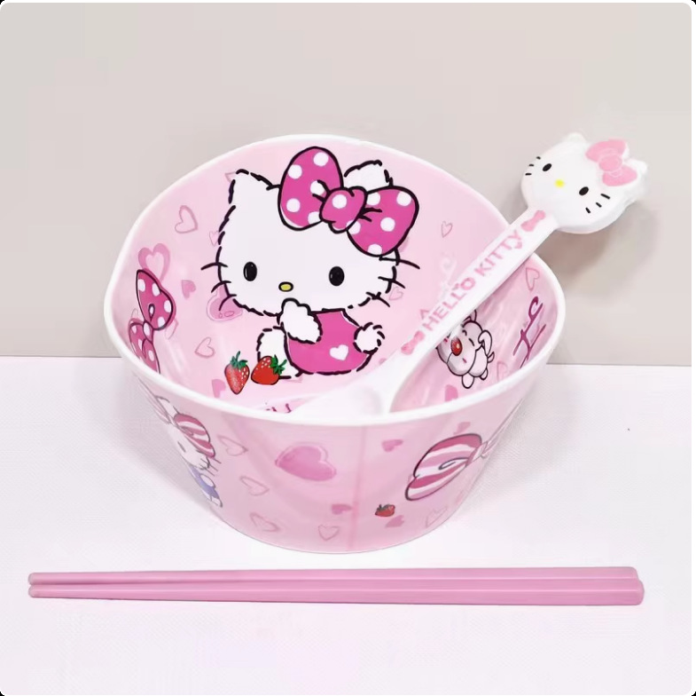 • 핑크 KT 그릇 + 숟가락과 젓가락