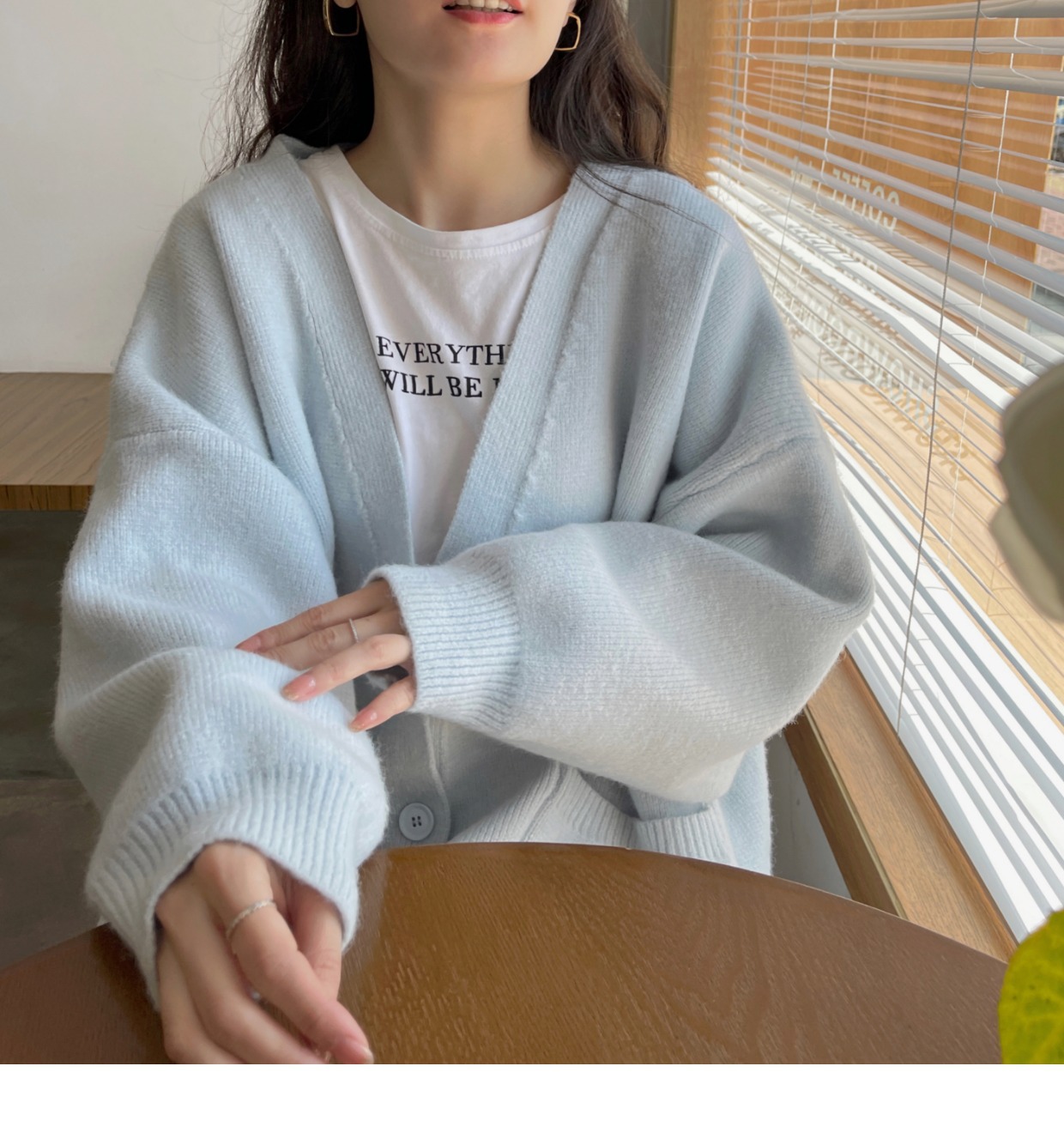 여성을위한 한국 스타일 v 넥 니트 카디건 2025 가을 새로운 스타일 게으른 스타일 느슨한 부드러운 밀랍 다목적 스웨터 재킷 여성 의류스토어 가기