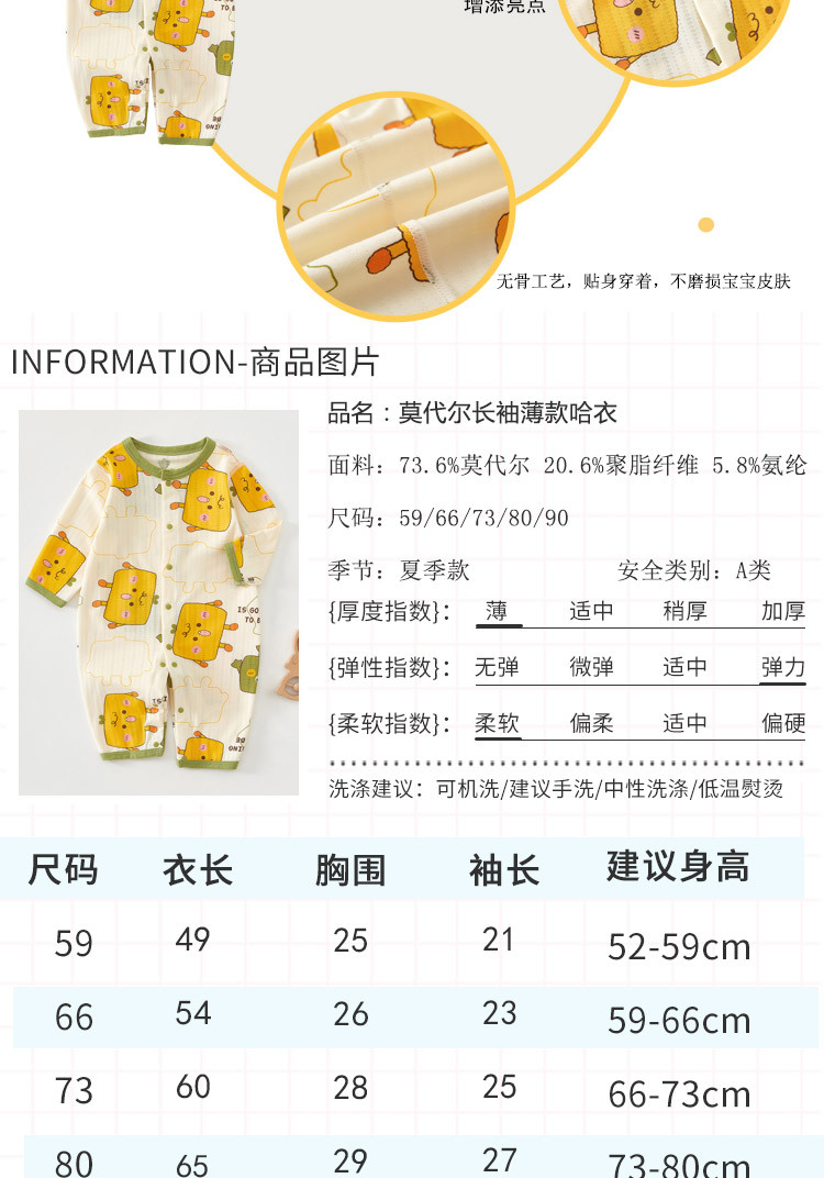 아기 점프 수트 여름 얇은 아기 긴팔 에어컨 옷 파자마 신생아 옷 모달 하 옷 등반 옷스토어 가기