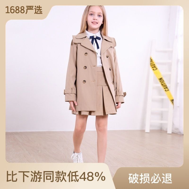 아동 의류 소녀 소년 2025 트렌치 코트 방수 윈드 브레이커 더블 브레스트 클래식 벨트 코트 자켓 드레스 코트스토어 가기