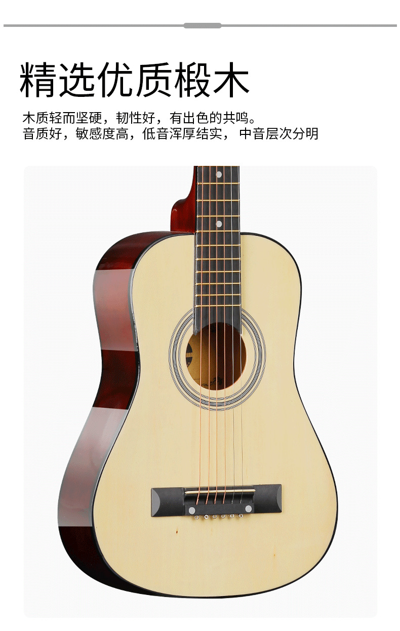 30inch 포크 기타 도매 어린이 초급 모델 초보자 기타 밝은 연습 피아노 인기있는 배럴 기타