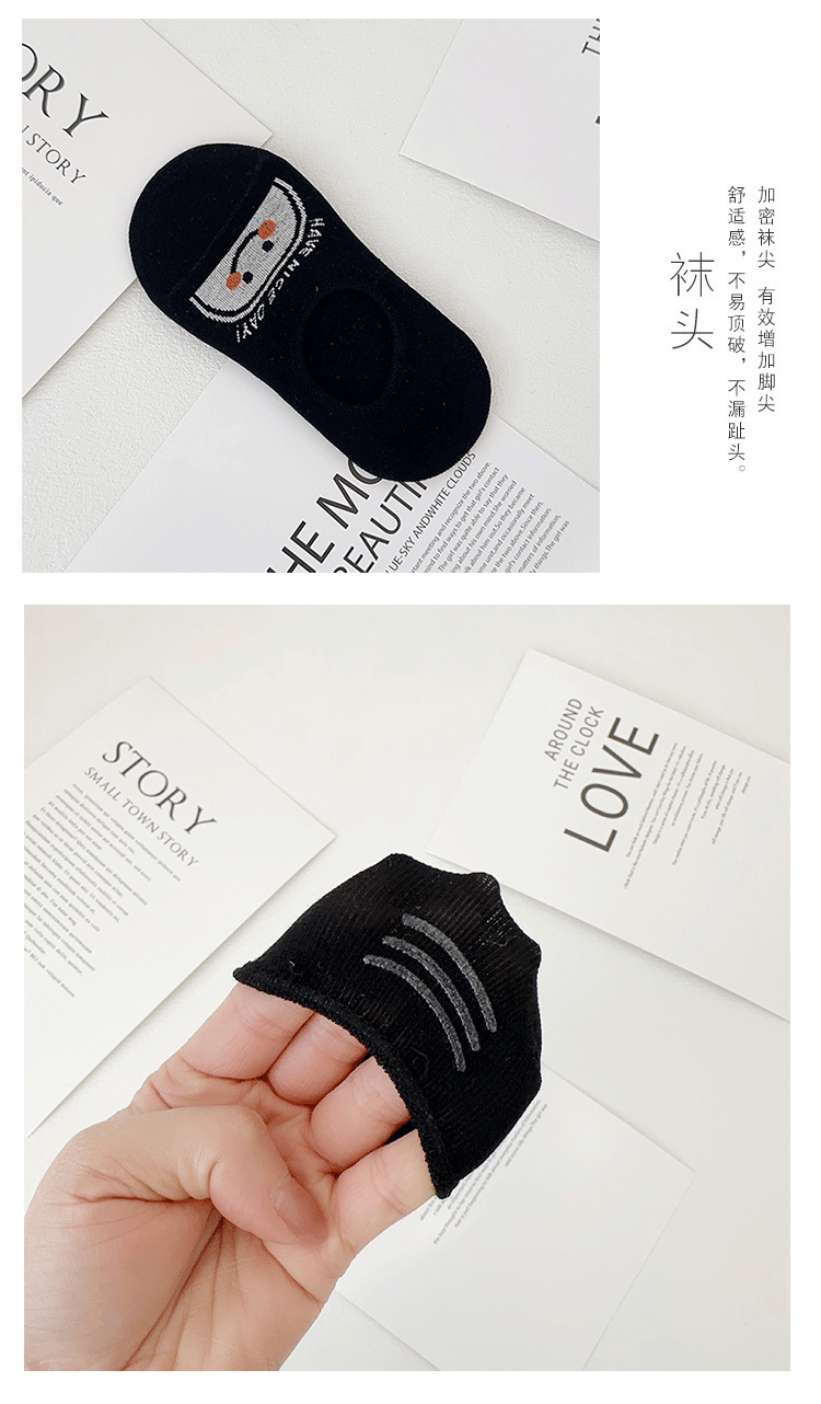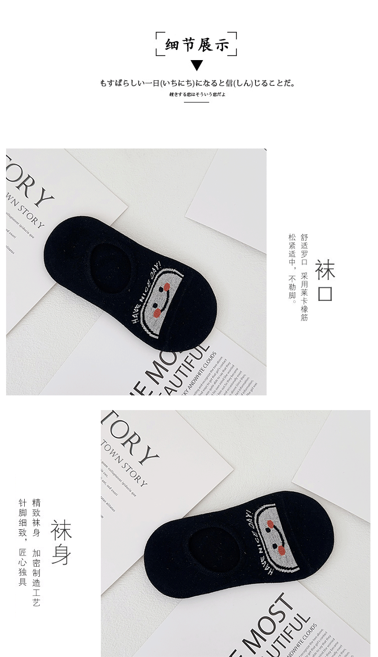 Yishuangshuang 어린이 양말 여름 새로운 만화 웃는 얼굴 보트 양말 빗질면 흑백 얕은 입 보이지 않는 양말 뼈없는 양말스토어 가기