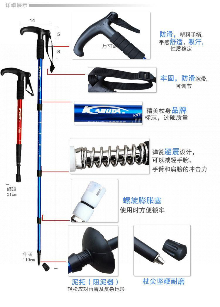 무료 배송 야외 장비 관광 용품 등산 스틱 워킹 스틱 워킹 스틱 초경량 알루미늄 합금 텔레스코픽 워킹 스틱 노인을위한