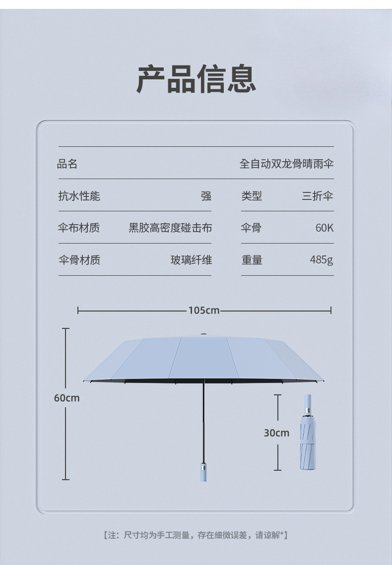 • 헤이즈 블루 [자동] 60 리브 + 방풍 - 비닐 자외선 차단 우산