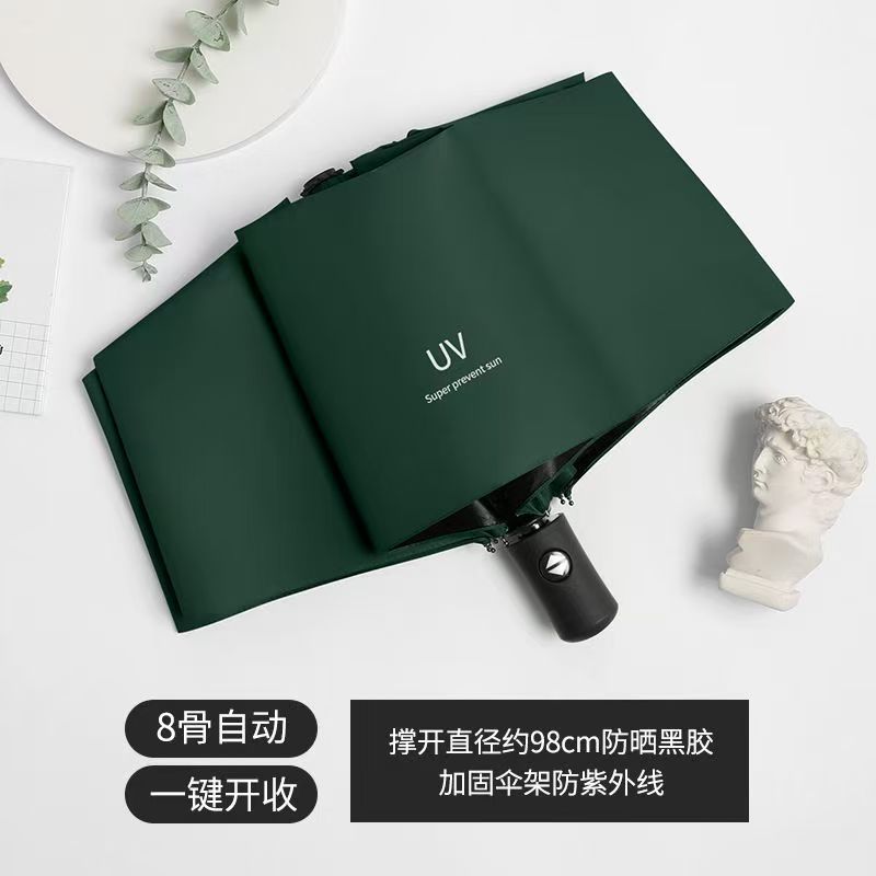 • 진한 녹색 [자동] 8본 검정색 플라스틱 방풍 및 자외선 차단 우산