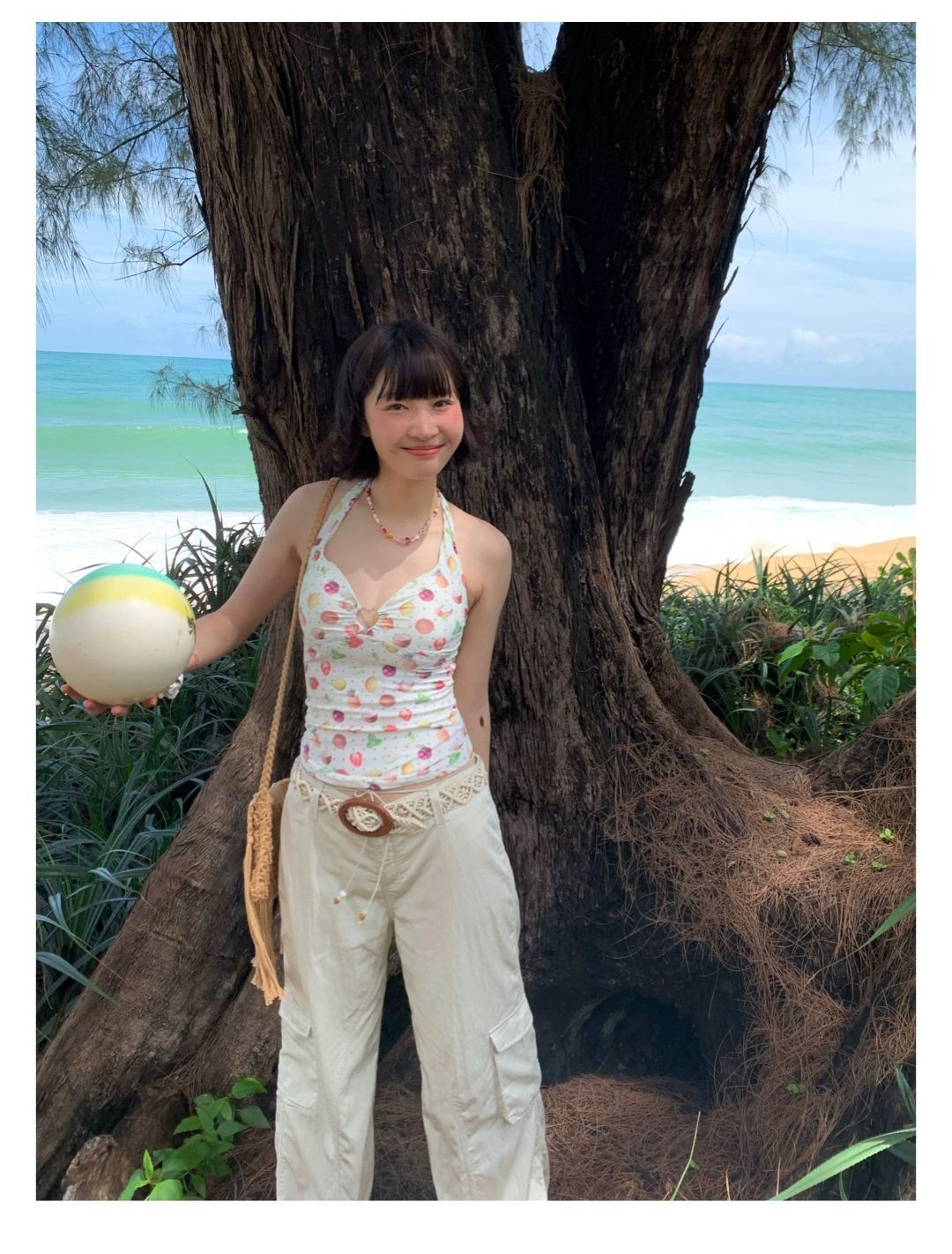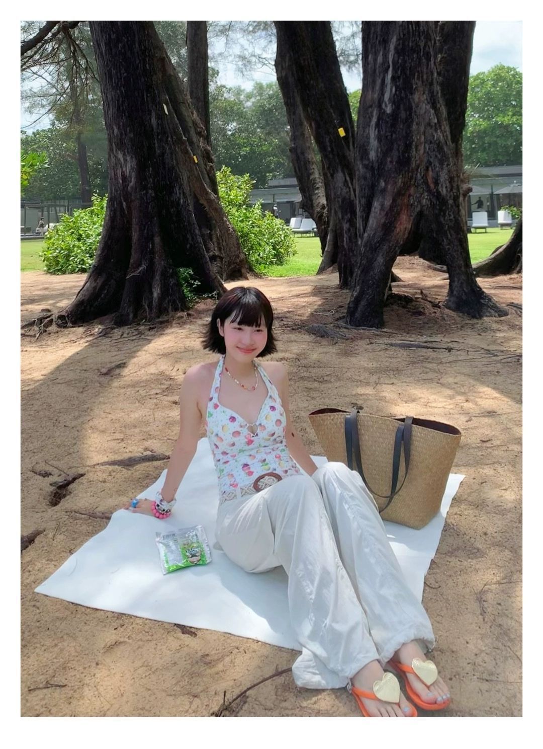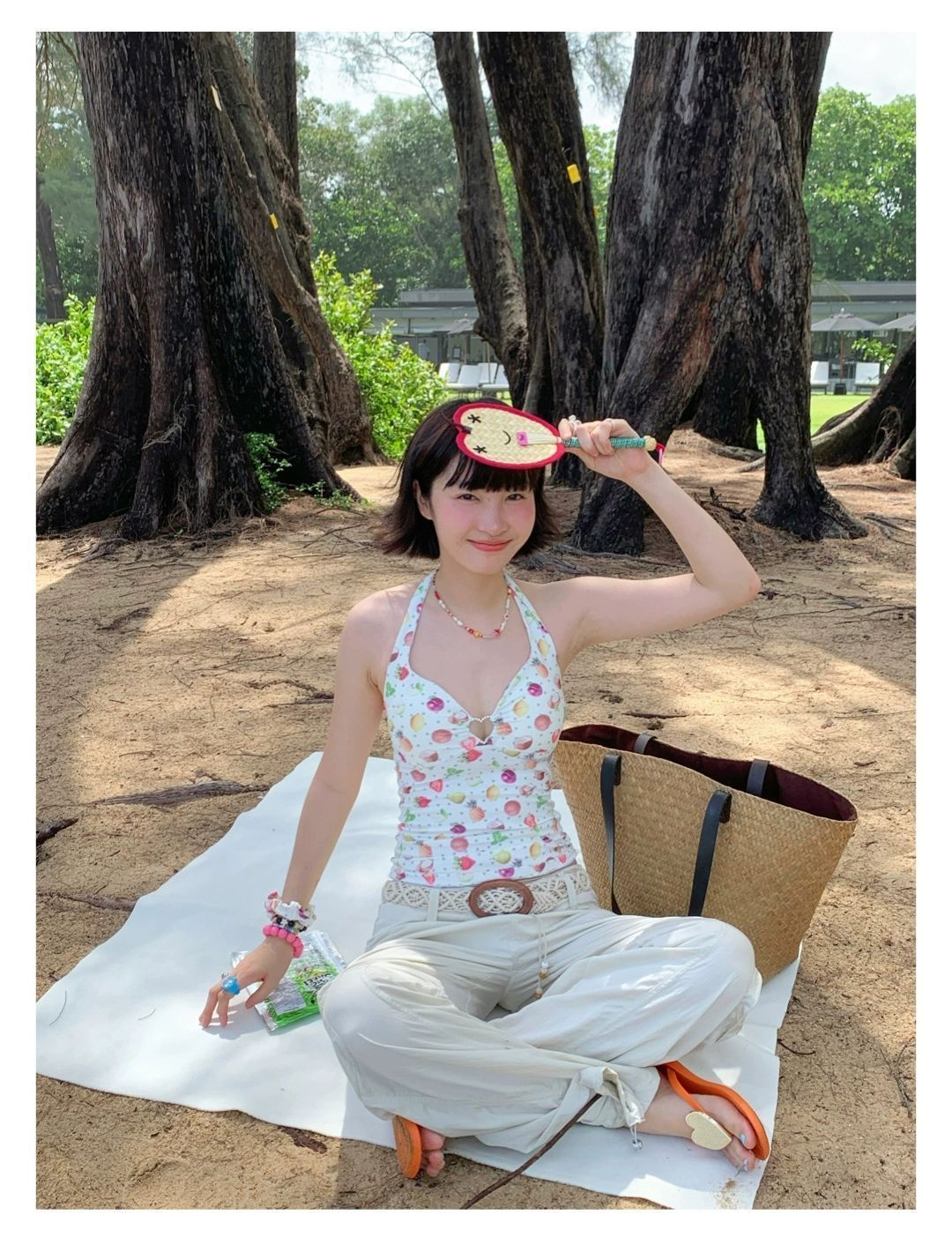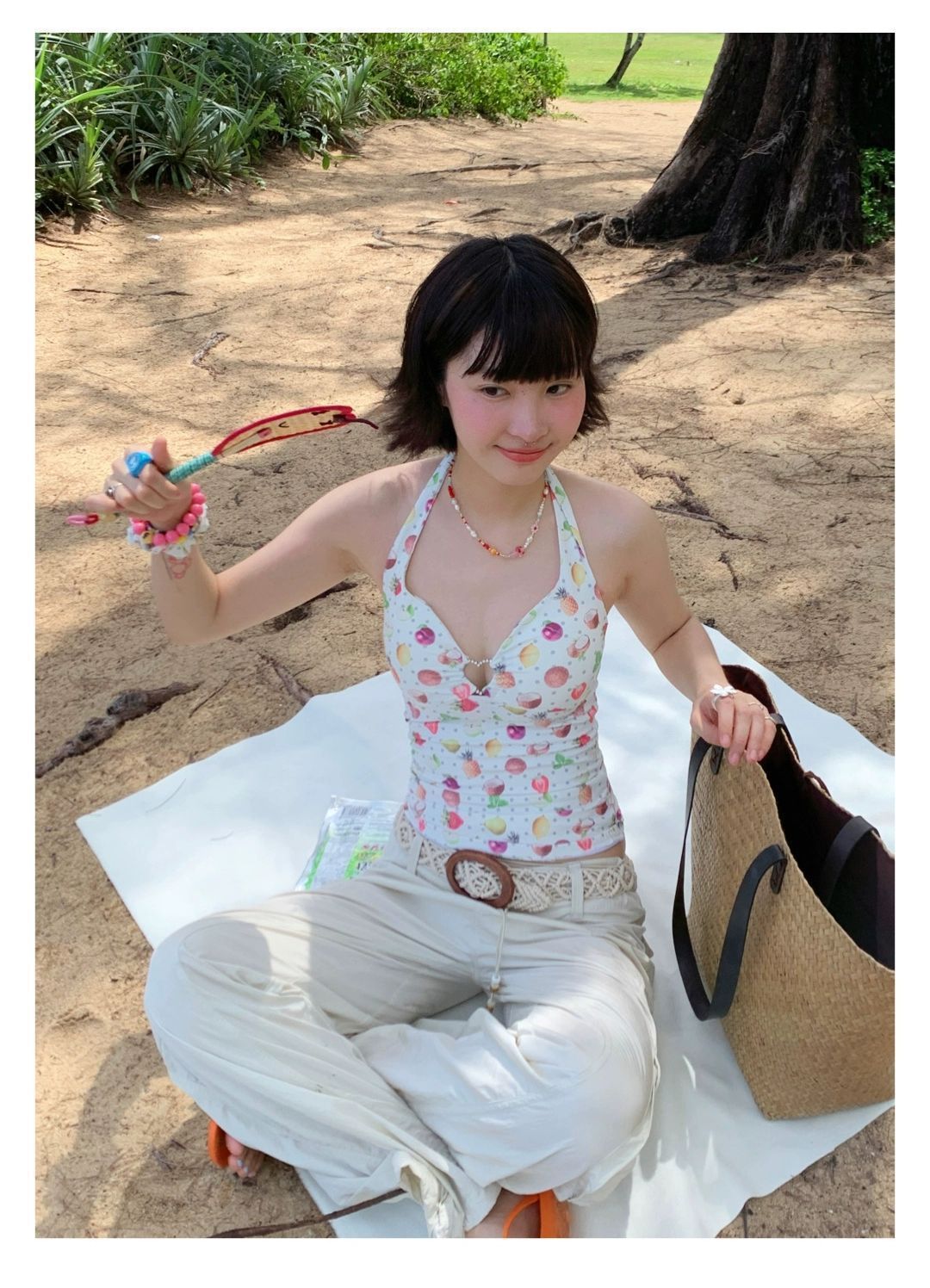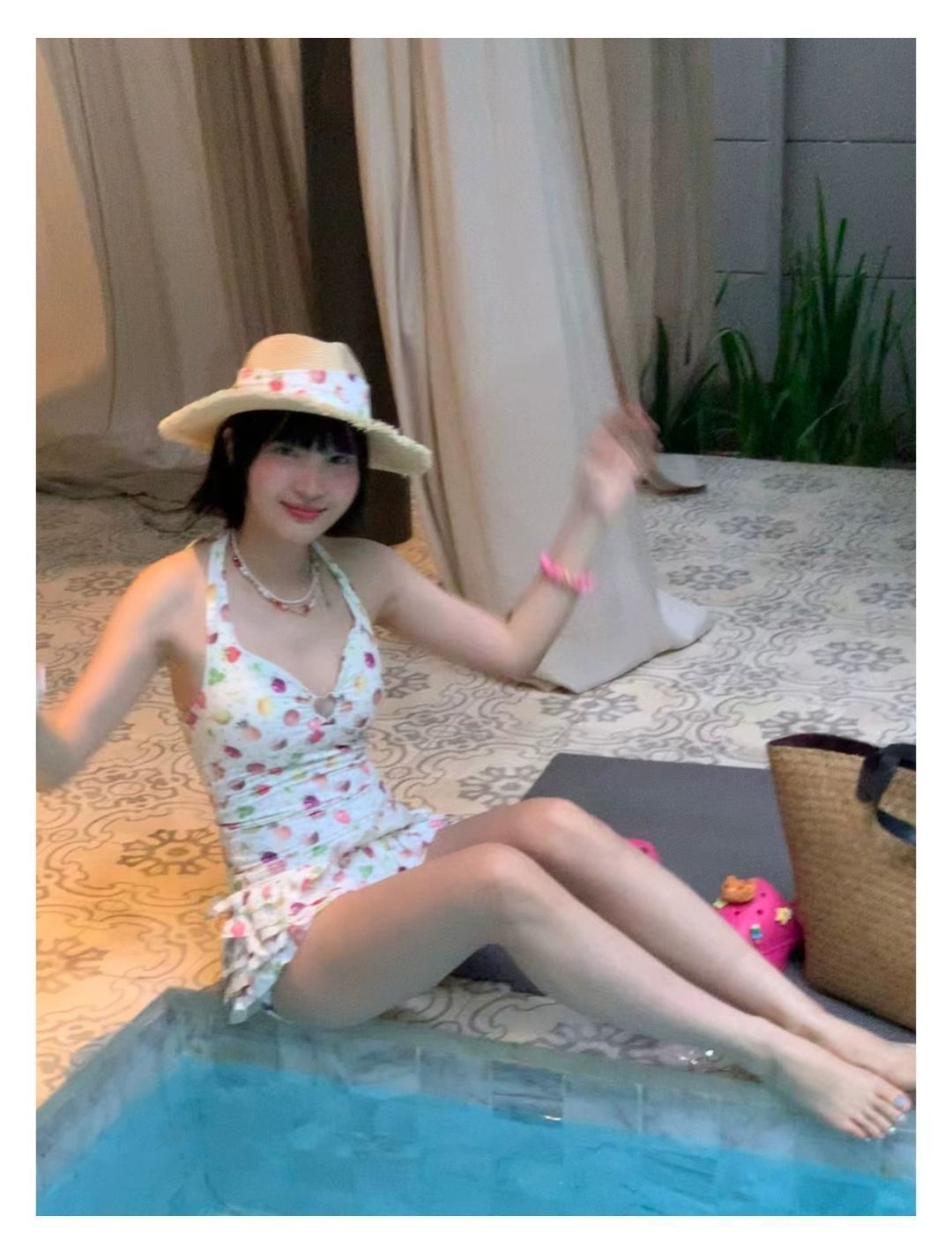 2026년 신상 순수하고 섹시한 여름 과일무늬 프린트 해변 온천 수영복 여성용 러플 반바지 투피스 세트스토어 가기