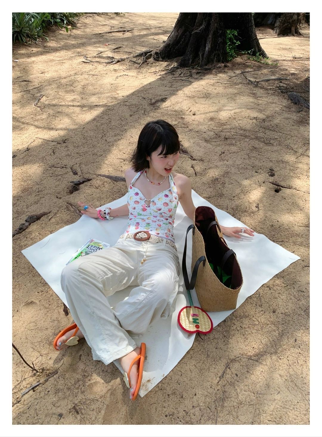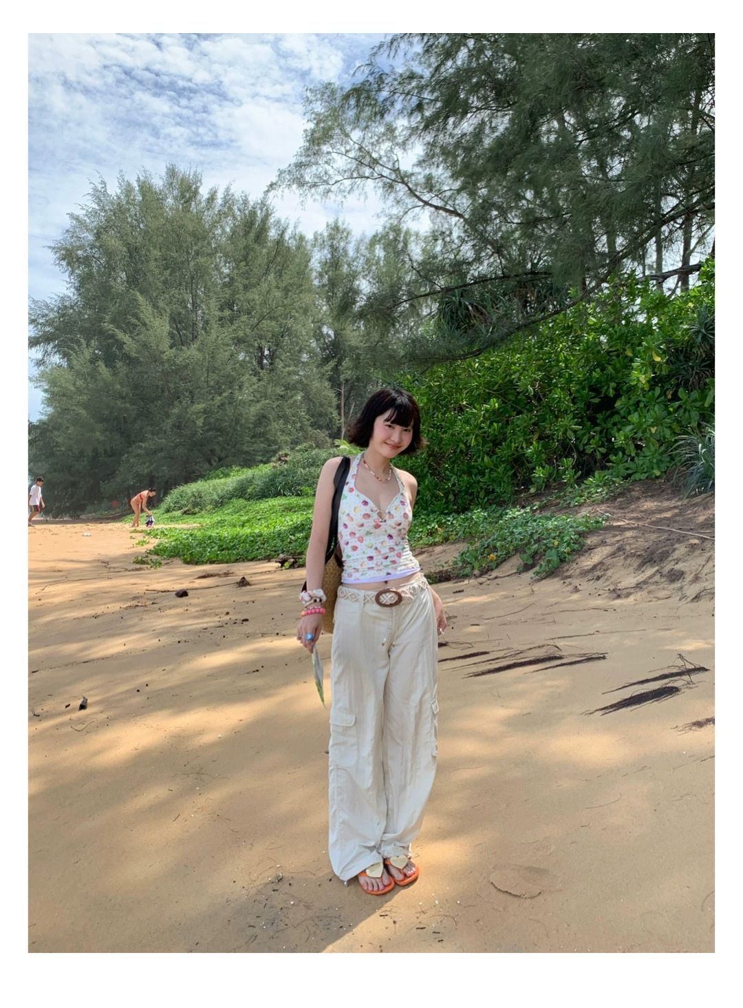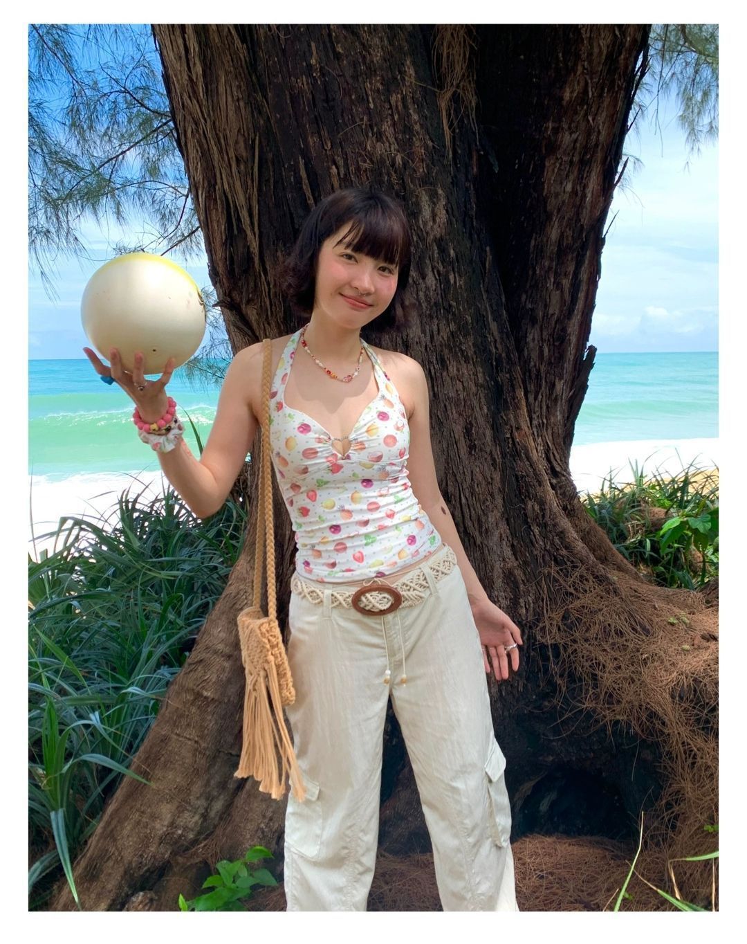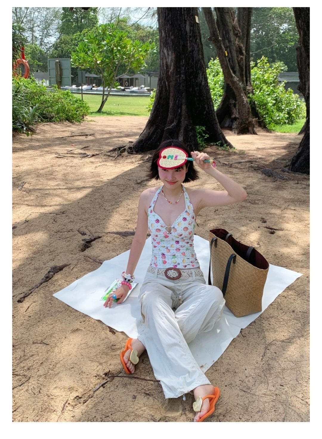 2026년 신상 순수하고 섹시한 여름 과일무늬 프린트 해변 온천 수영복 여성용 러플 반바지 투피스 세트스토어 가기