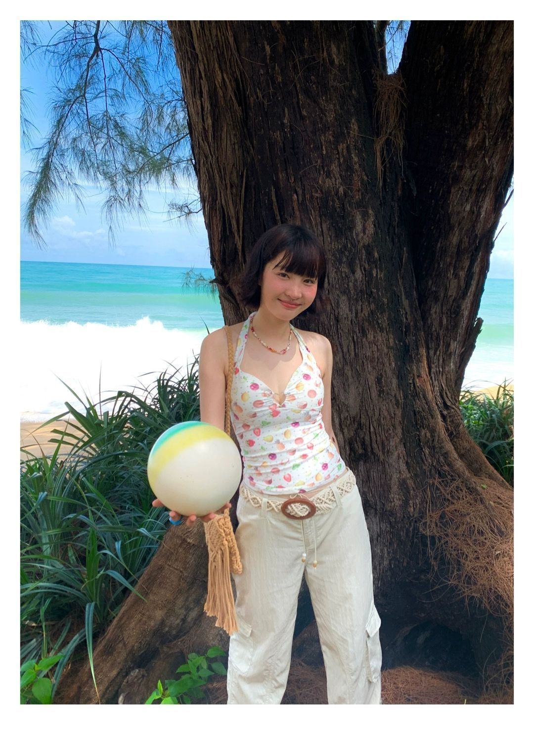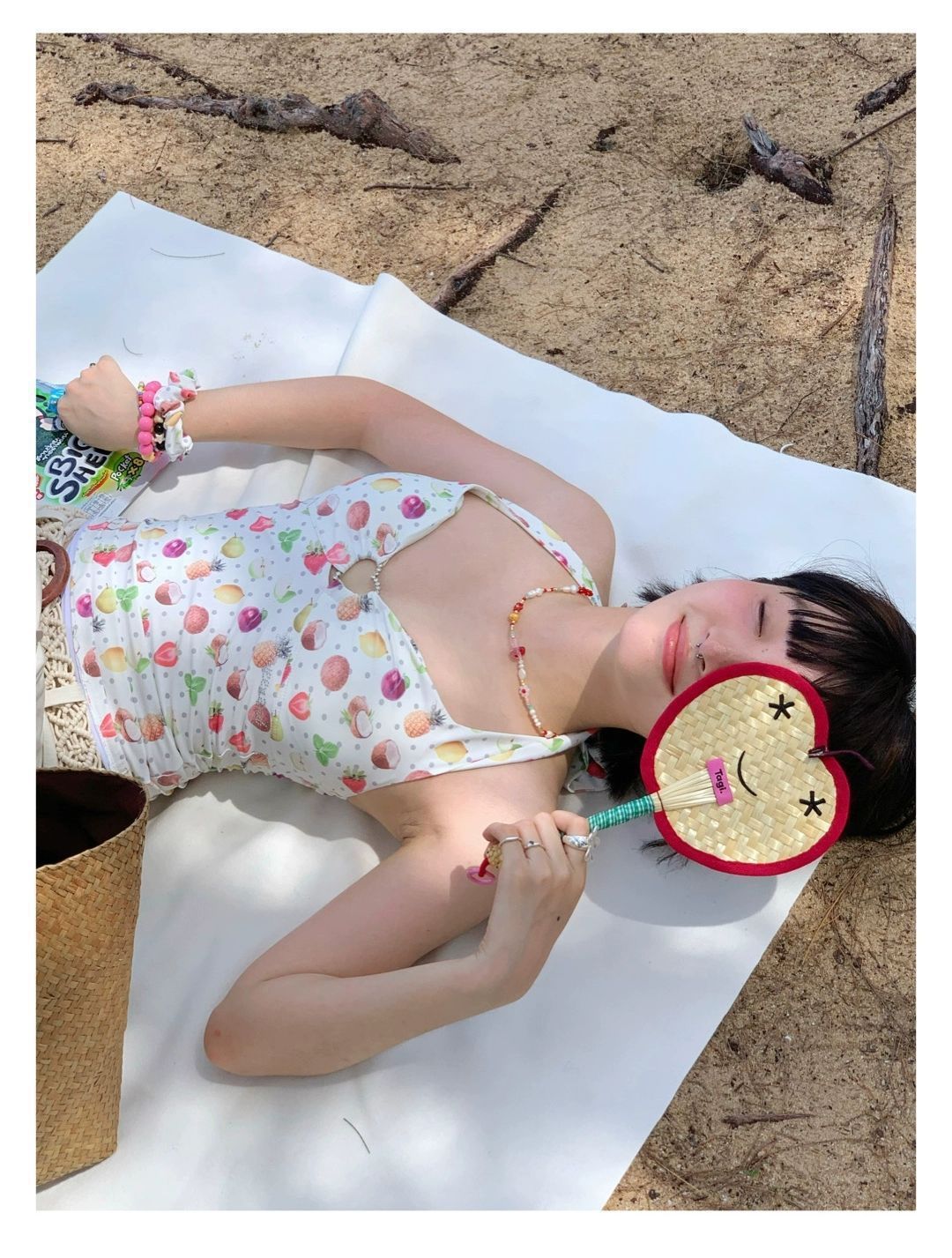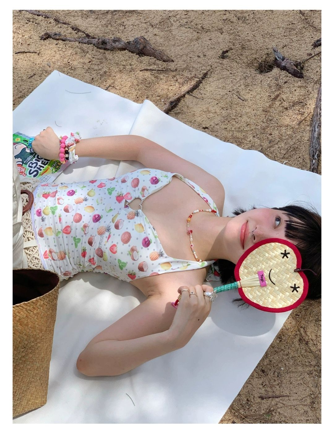 2026년 신상 순수하고 섹시한 여름 과일무늬 프린트 해변 온천 수영복 여성용 러플 반바지 투피스 세트