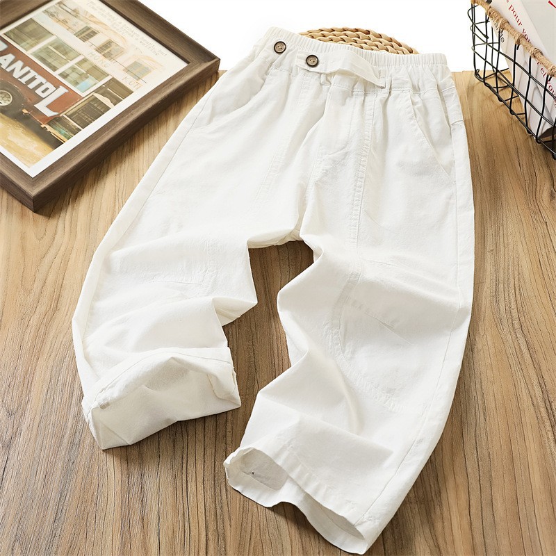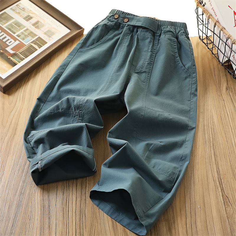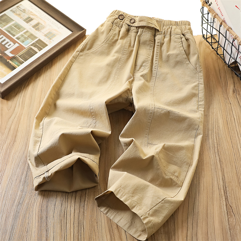 어린이 여름 얇은 캐주얼 바지 중대형 어린이 단색 작업복 모기 방지 바지 소년과 소녀를위한 스트레이트 바지 아동 의류 2025 새로운 스타일