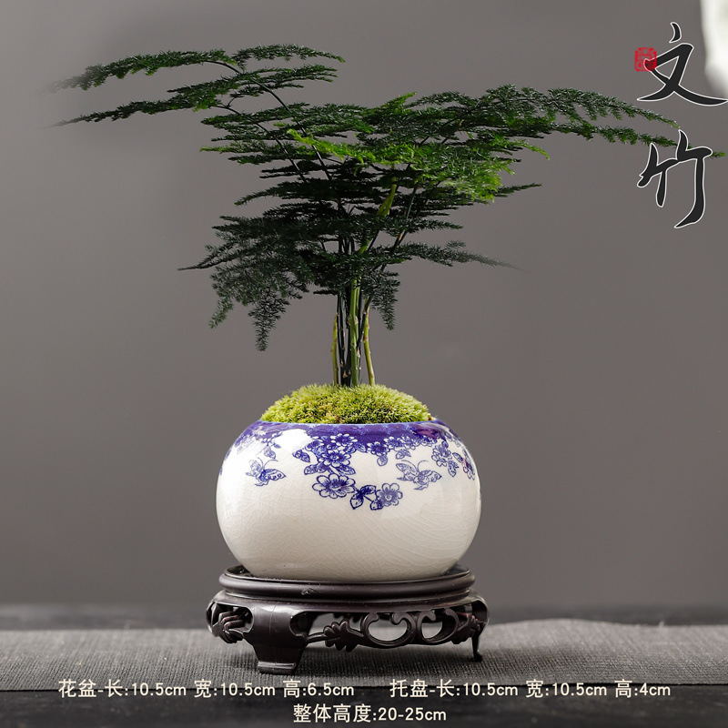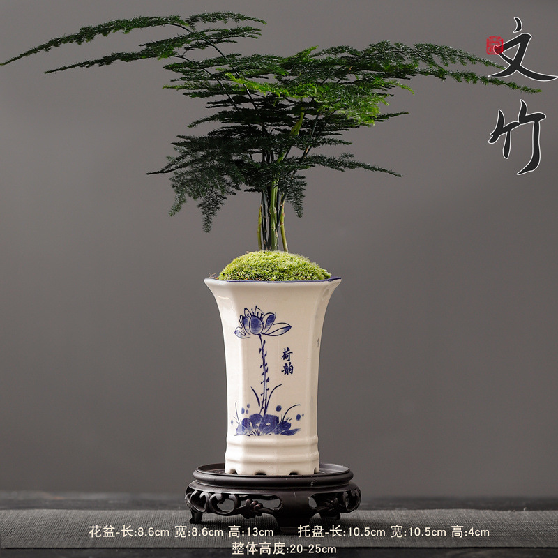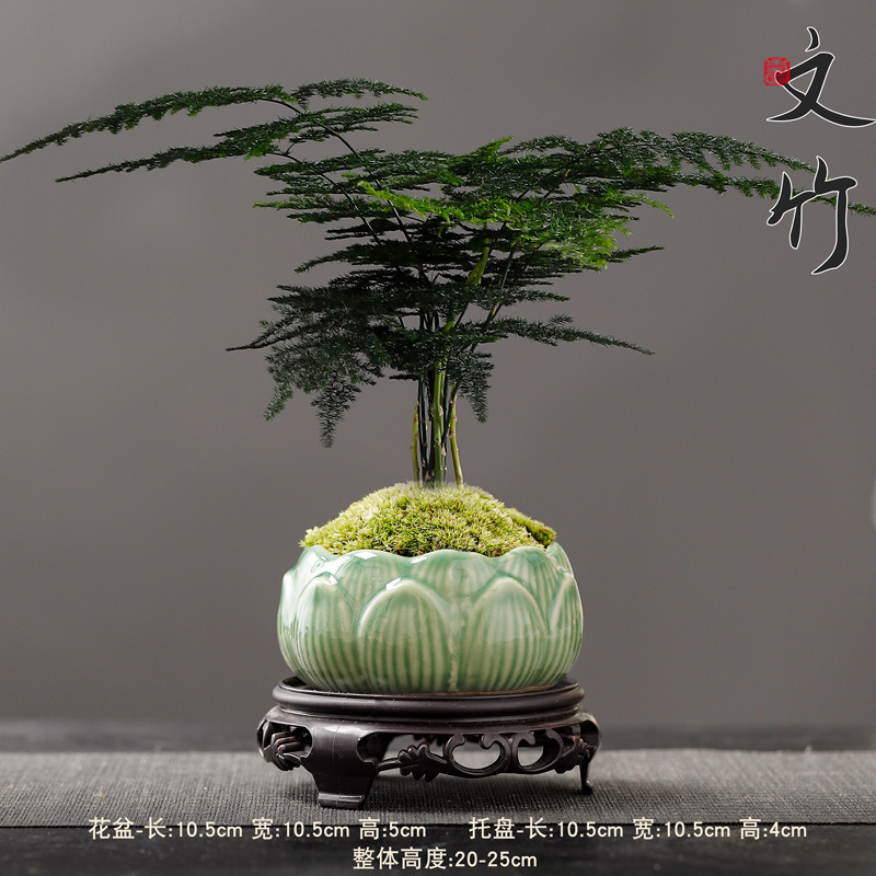 • 연꽃 도자기 냄비 + 아스파라거스 대나무 + 이끼 + 베이스