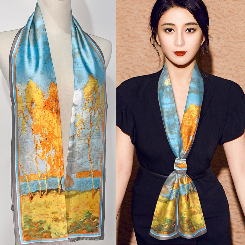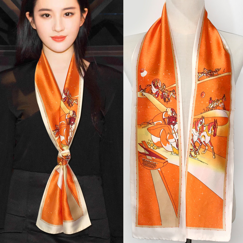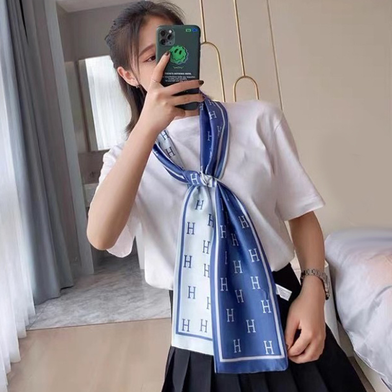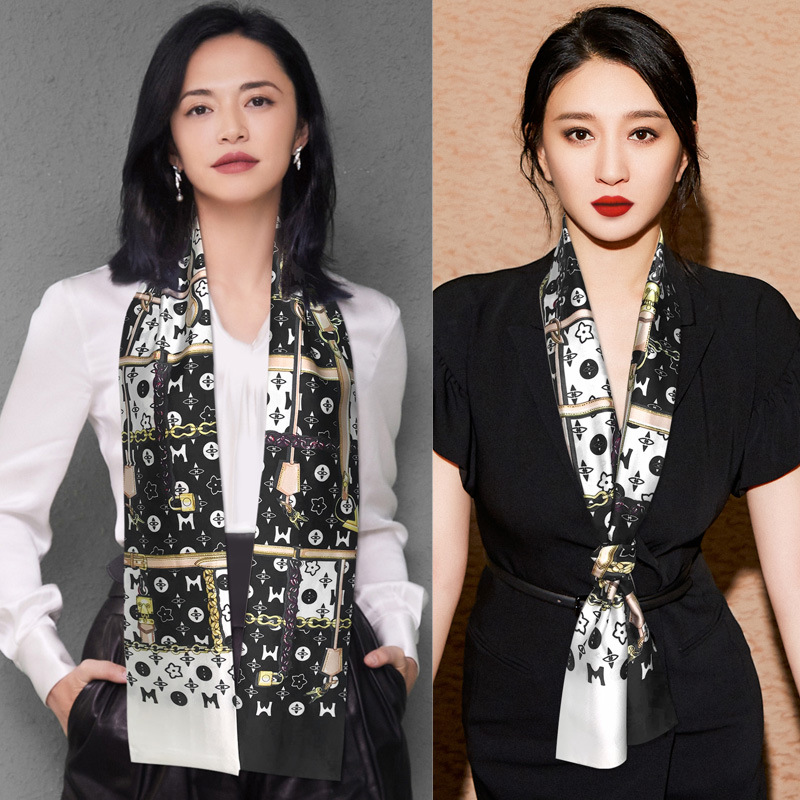 실크 스카프, 작은 스트립, 봄, 가을 목 보호대, 서양식 패션 스카프, 흑백 한국식 다용도 얇은 여성 스카프스토어 가기