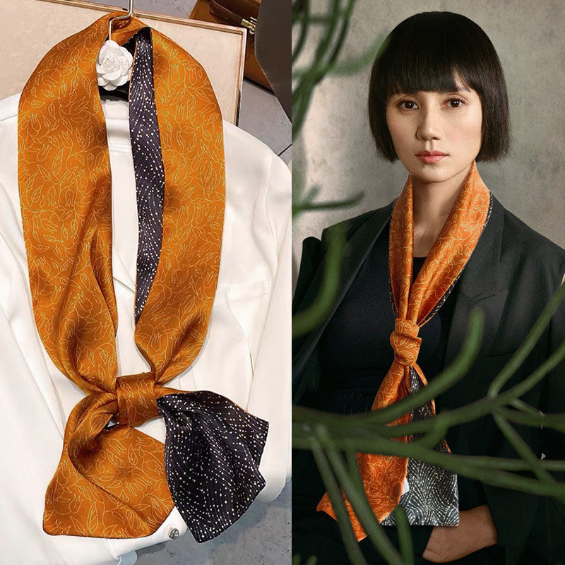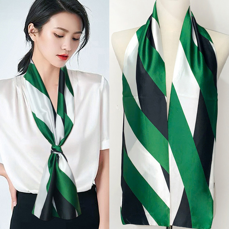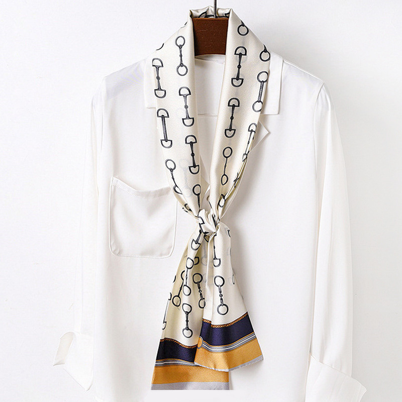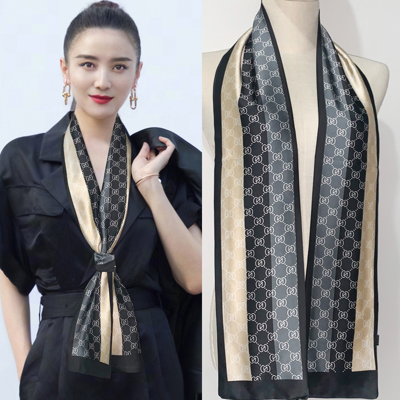 실크 스카프, 작은 스트립, 봄, 가을 목 보호대, 서양식 패션 스카프, 흑백 한국식 다용도 얇은 여성 스카프