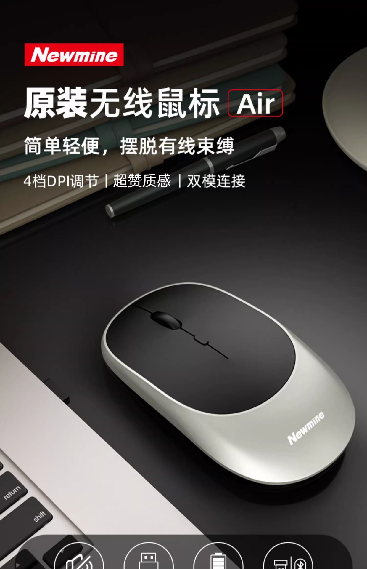 뉴먼 무선 마우스 블루투스 듀얼 모드 2.4G 충전식 휴대용 노트북 사무실 비즈니스 통신을 위해