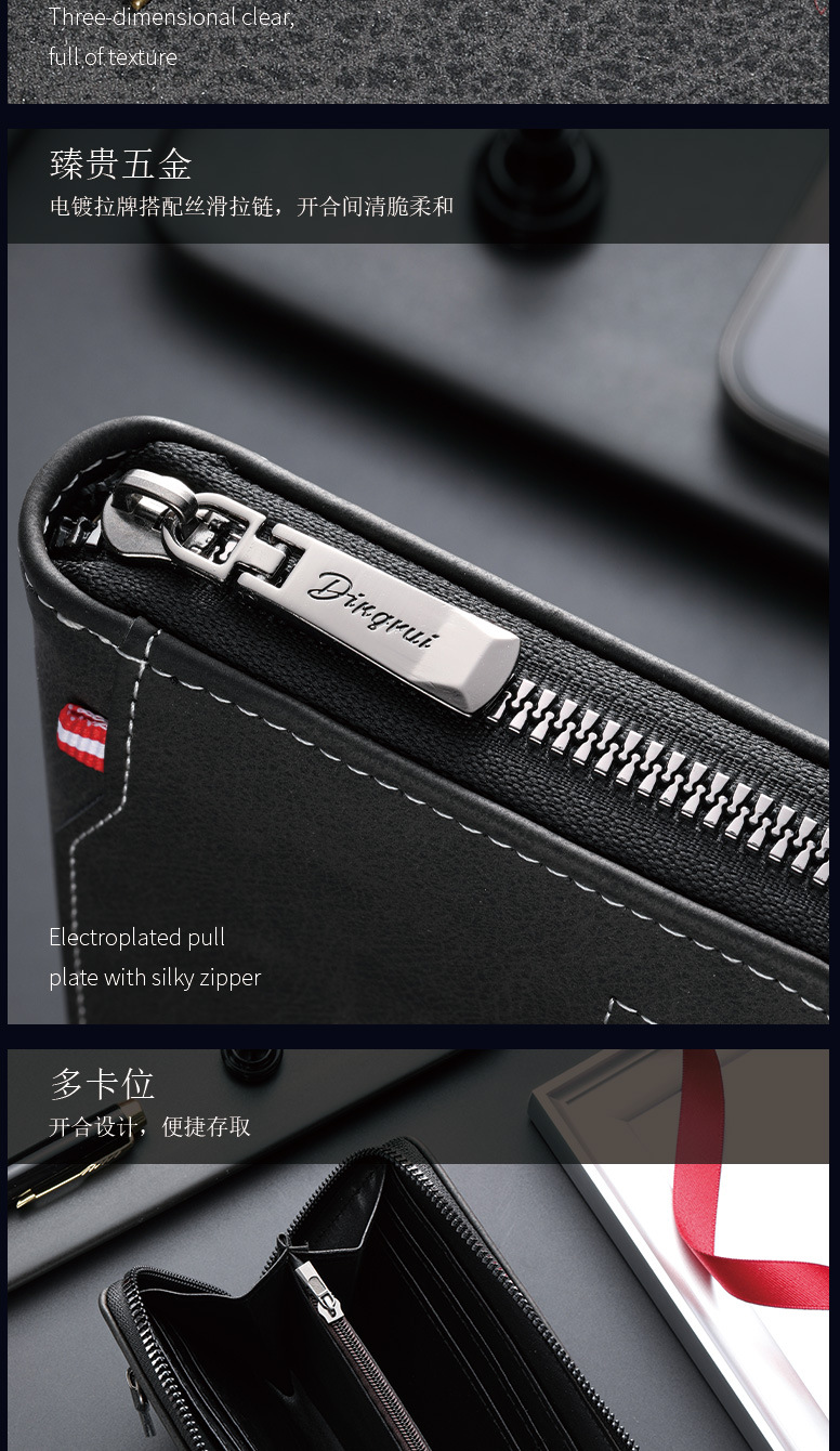 새로운 패션 남성 지퍼 지갑 긴 멀티 카드 대용량 다기능 동전 지갑
