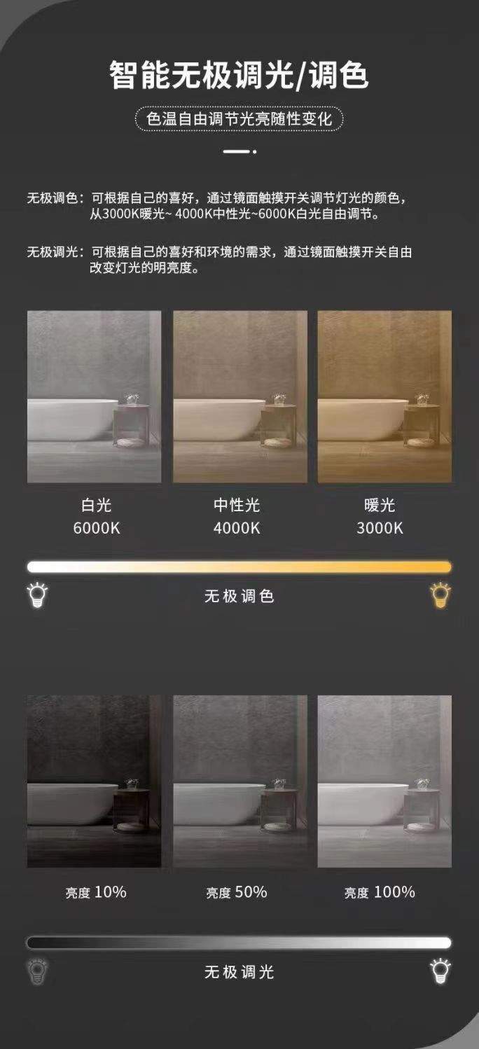 • 모델 A [3가지 색상 + 듀얼 터치 + 디포그 + 무단계 디밍]