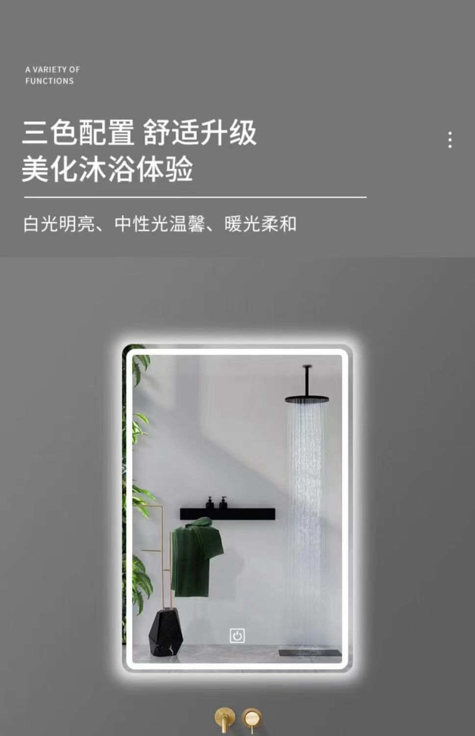 • 모델 A [3색조명+인체센서+듀얼터치+김서림방지]
