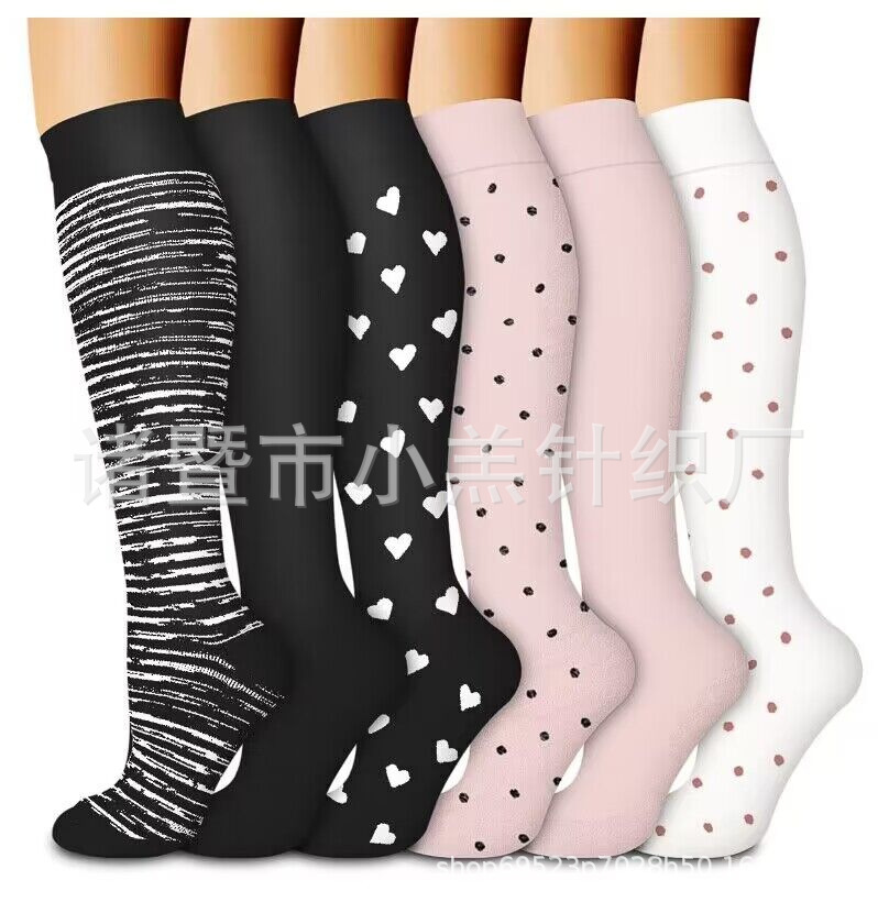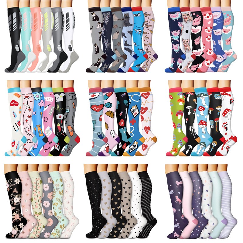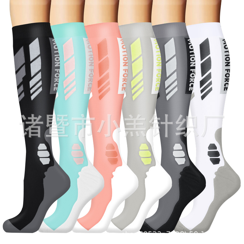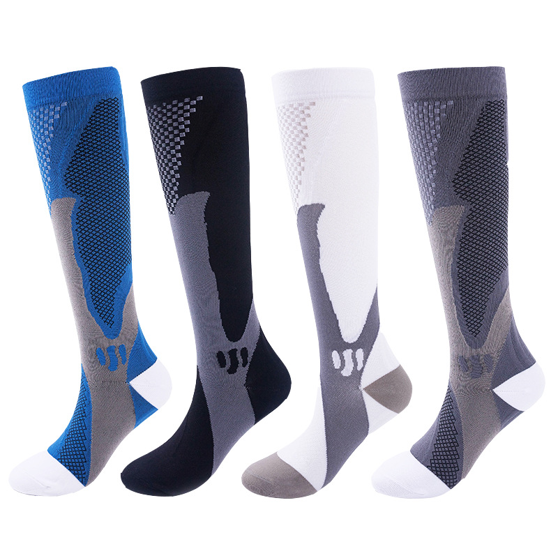 새로운 남성용 및 여성용 긴 압축 양말, 야외 사이클링 및 러닝 양말, 마라톤 압축 양말 제조업체 도매의 국경 간 전문 공급