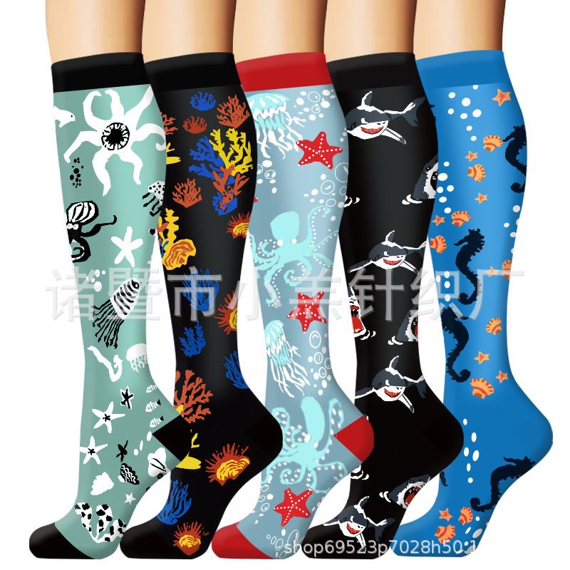 새로운 남성용 및 여성용 긴 압축 양말, 야외 사이클링 및 러닝 양말, 마라톤 압축 양말 제조업체 도매의 국경 간 전문 공급스토어 가기