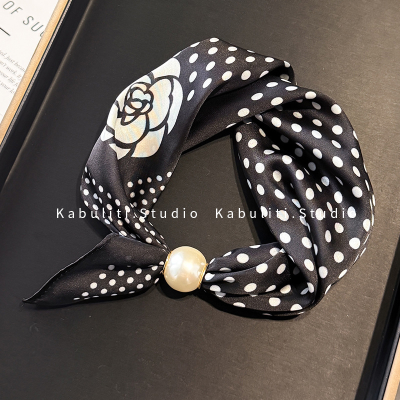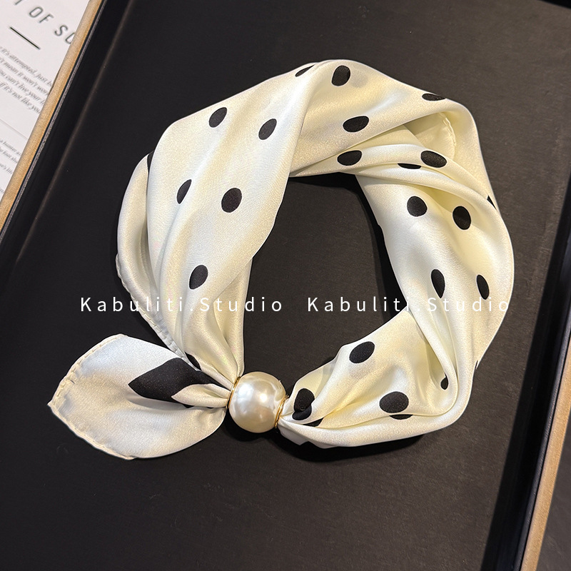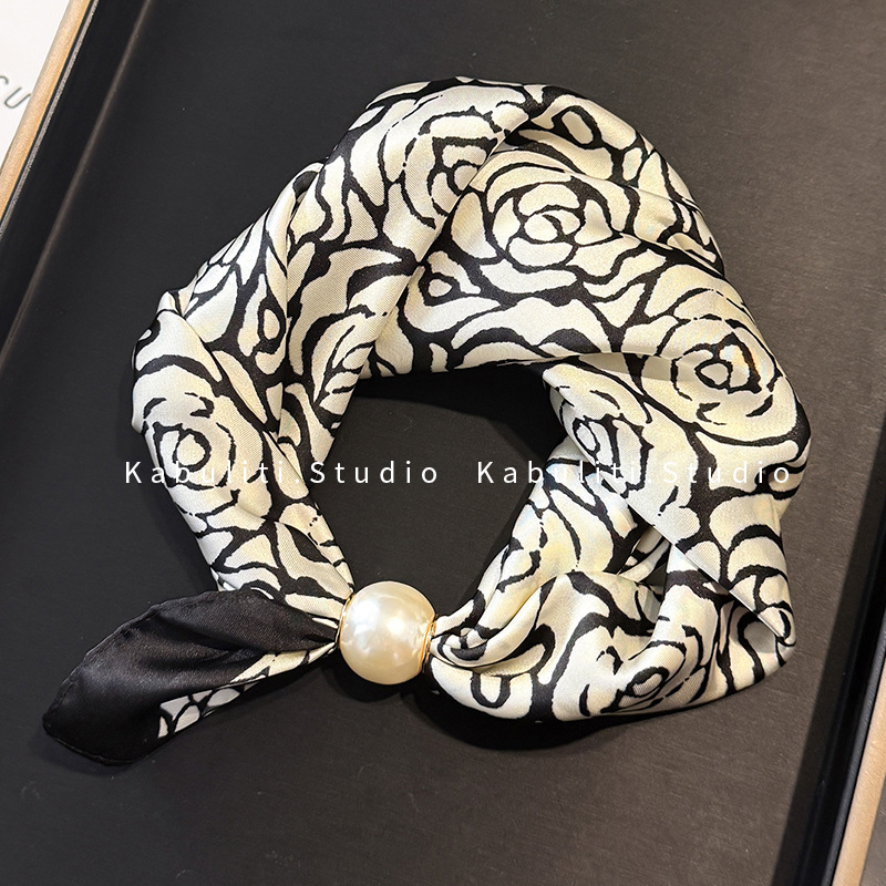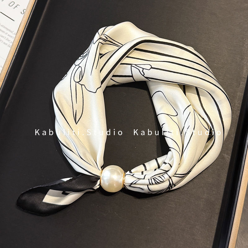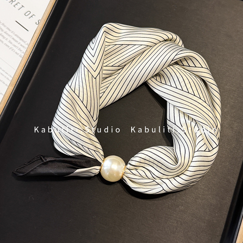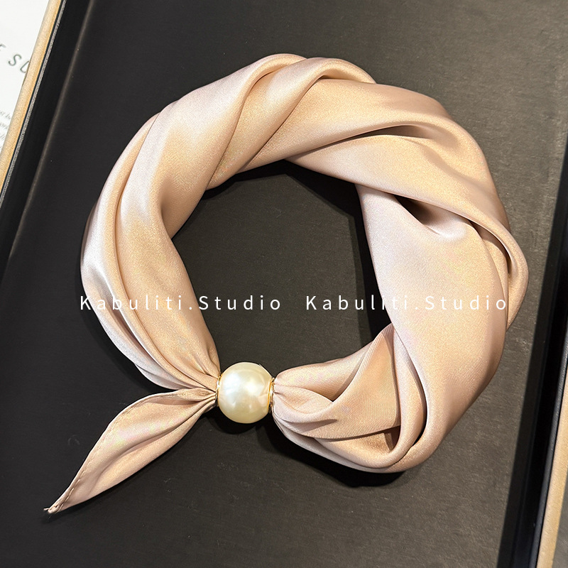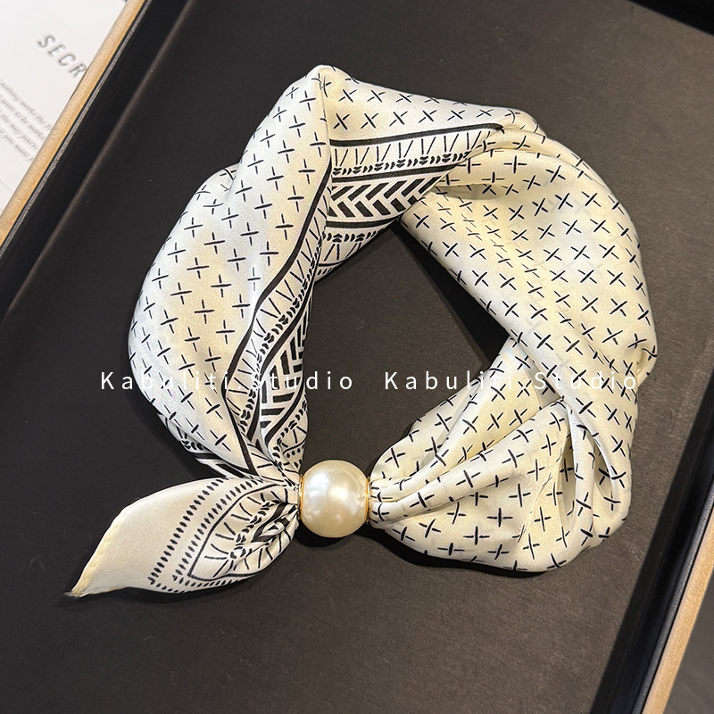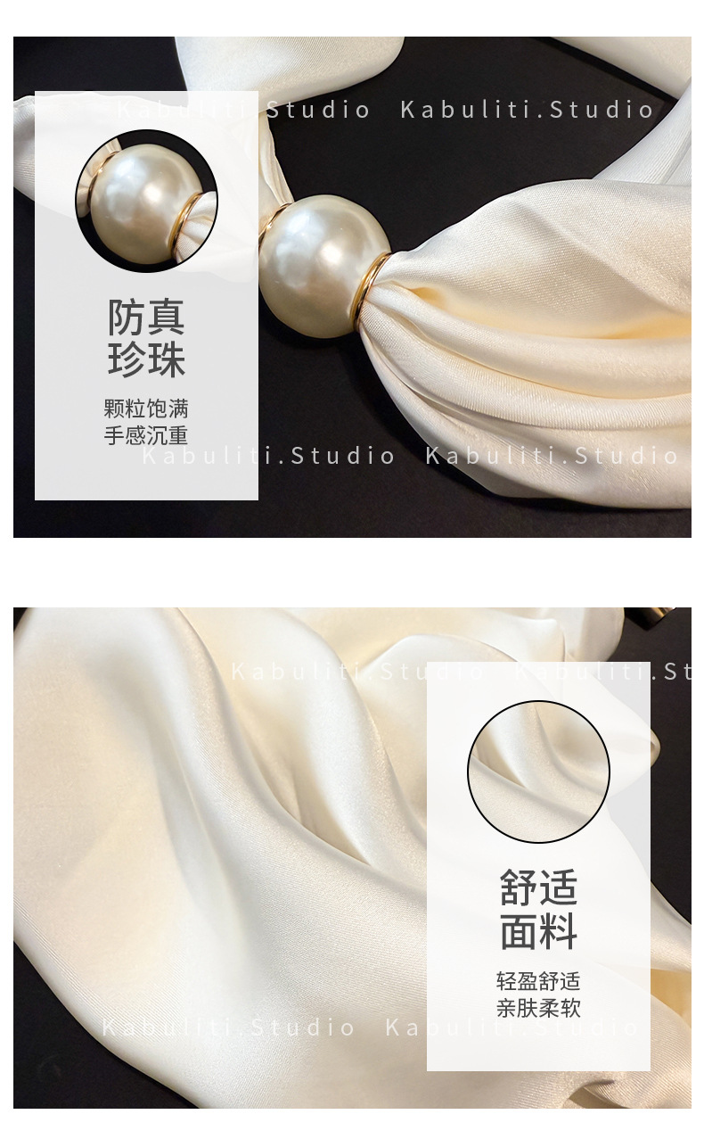 미색 자석 버클 진주 목걸이, 좁은 귀, 긴 실크 스카프, 셔츠와 얇은 스카프가 있는 여성용 목 보호대스토어 가기