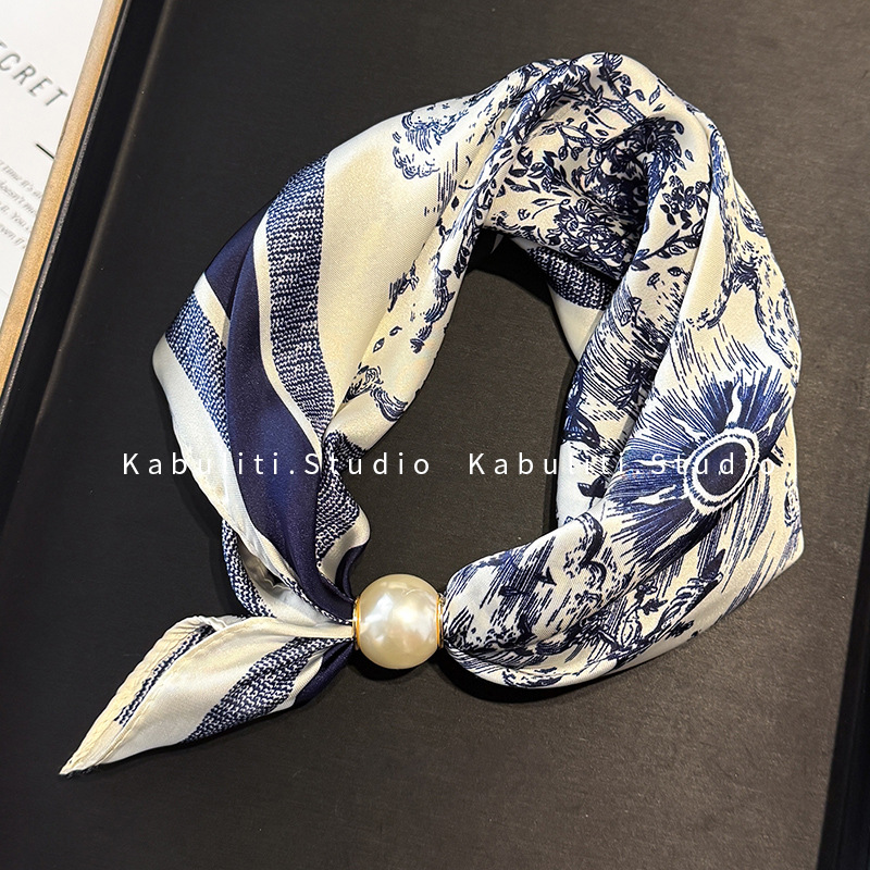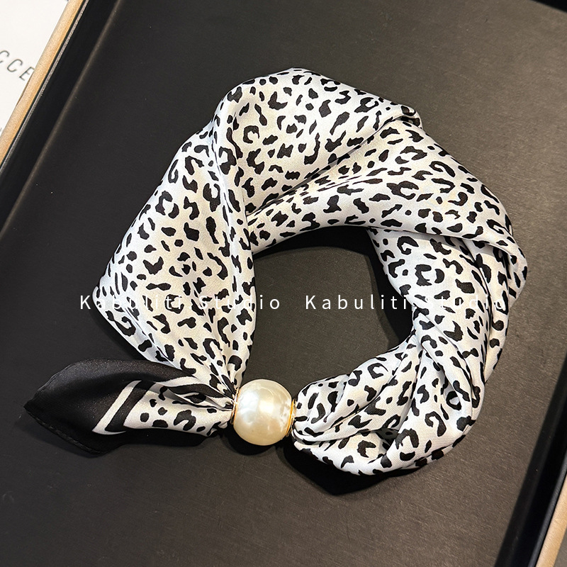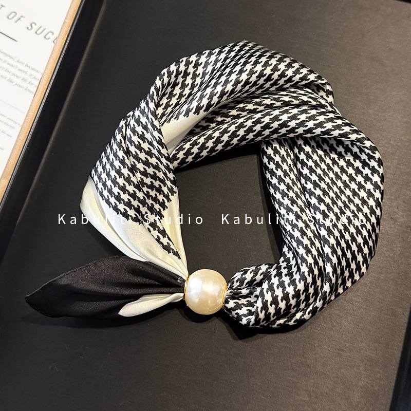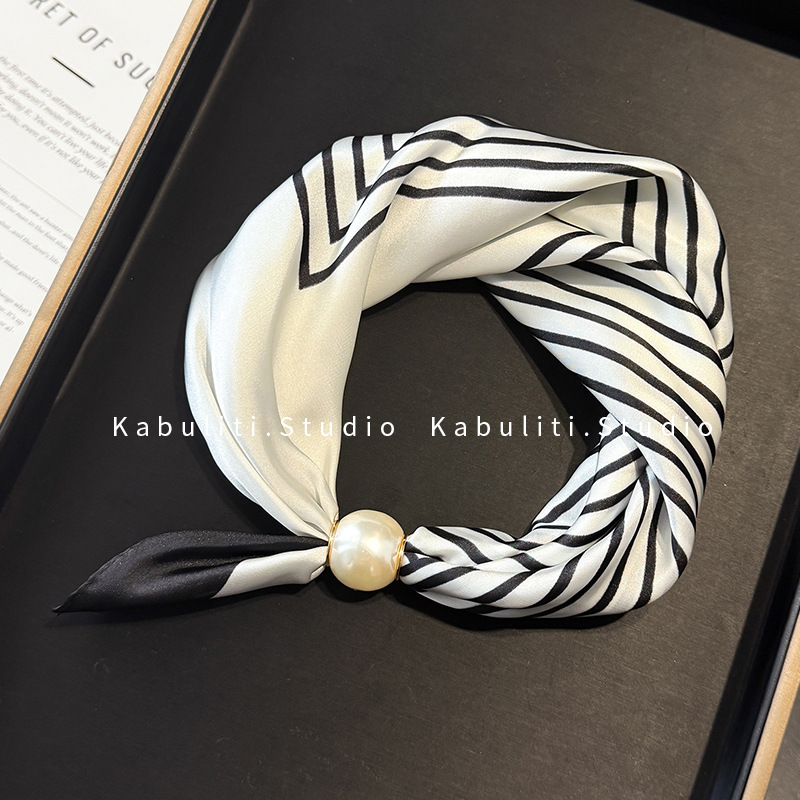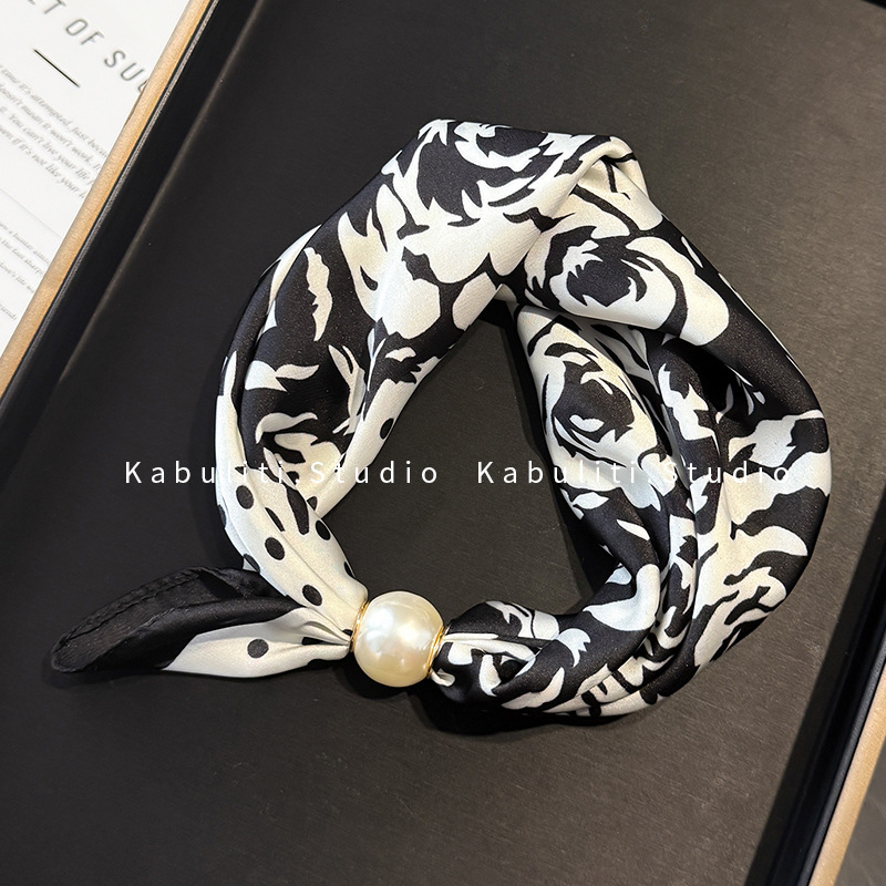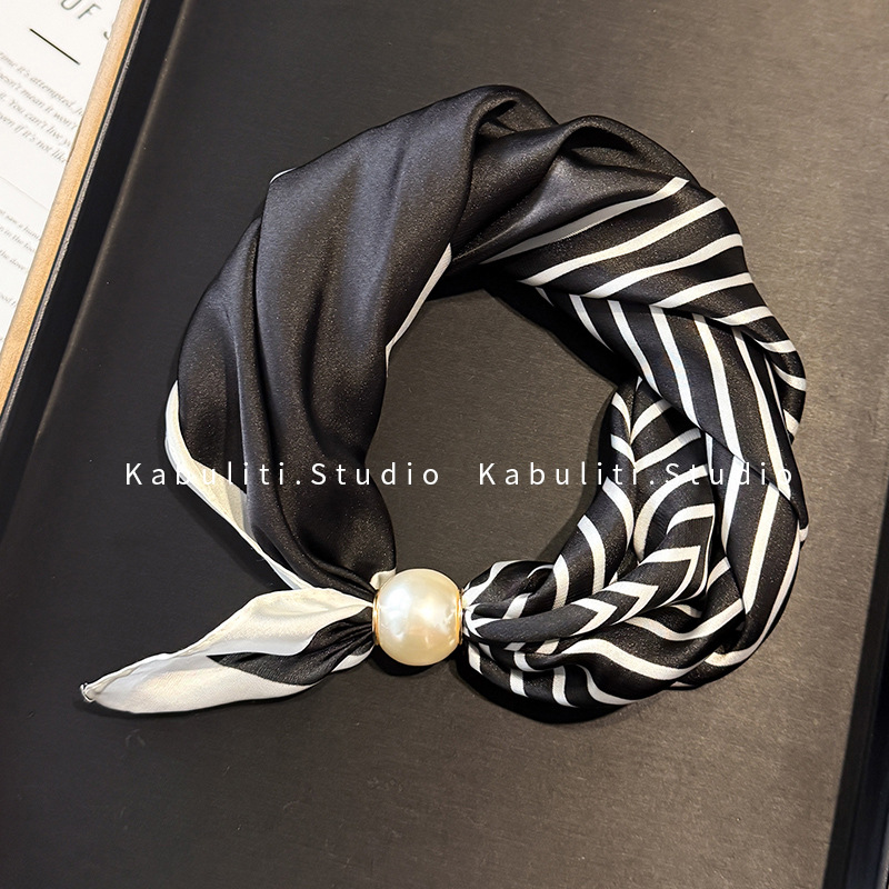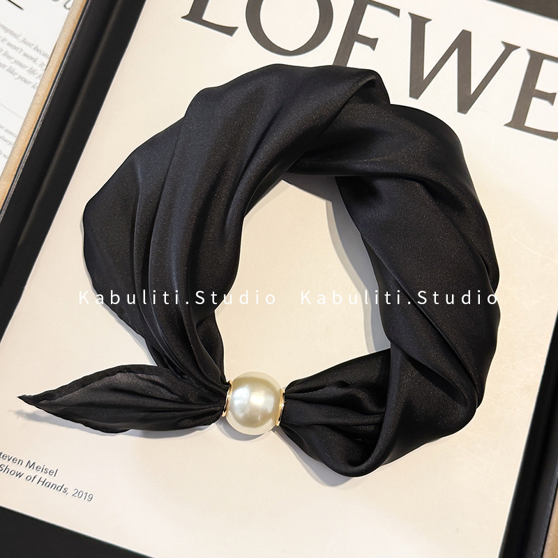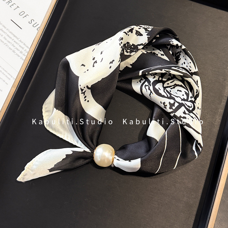 미색 자석 버클 진주 목걸이, 좁은 귀, 긴 실크 스카프, 셔츠와 얇은 스카프가 있는 여성용 목 보호대스토어 가기