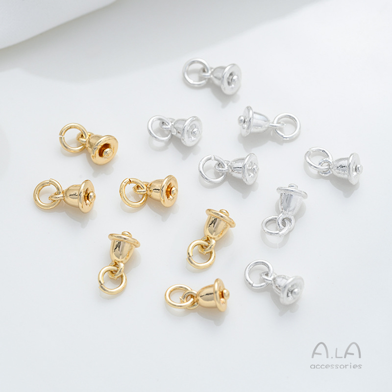 14K 금으로 채워진 비즈 수제 DIY 재료 실버 도금 벨 펜던트 크리스탈 진주 팔찌 쥬얼리 작은 드롭 액세서리