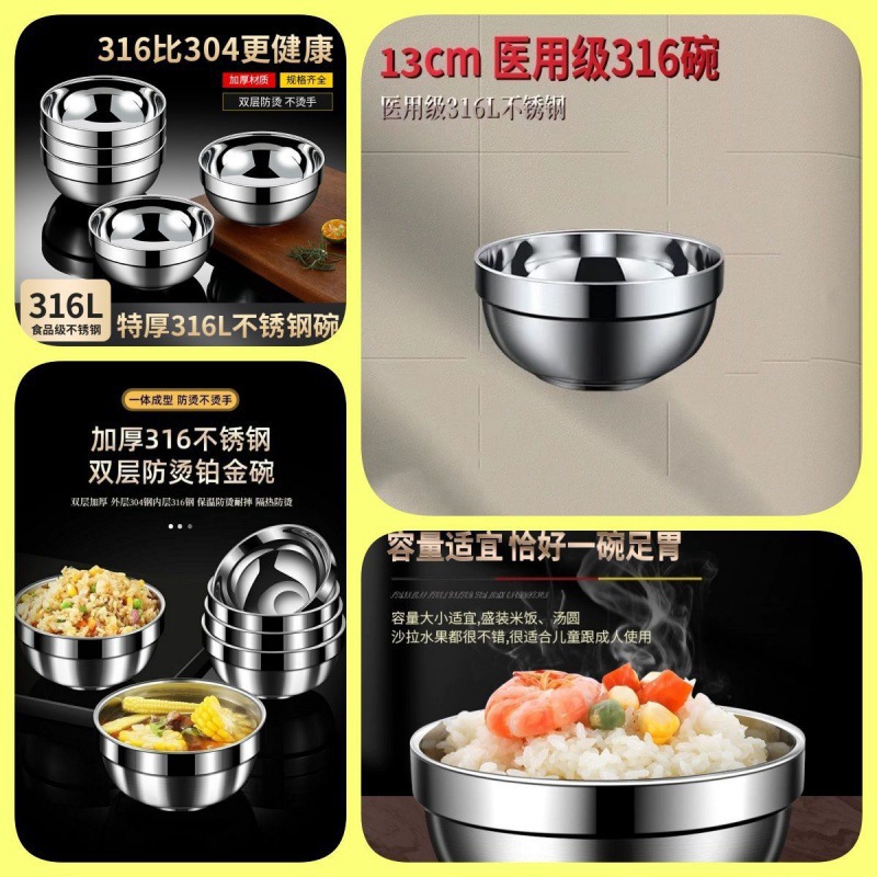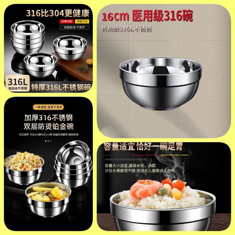 316 스테인레스 스틸 보울 가정용 매점 더블 레이어 보울 절연 보울 국수 보울 수프 보울 어린이 보울 드롭 방지 보울 식품 등급스토어 가기