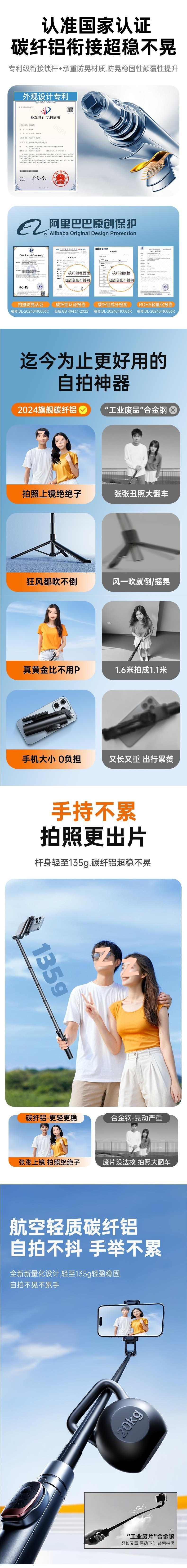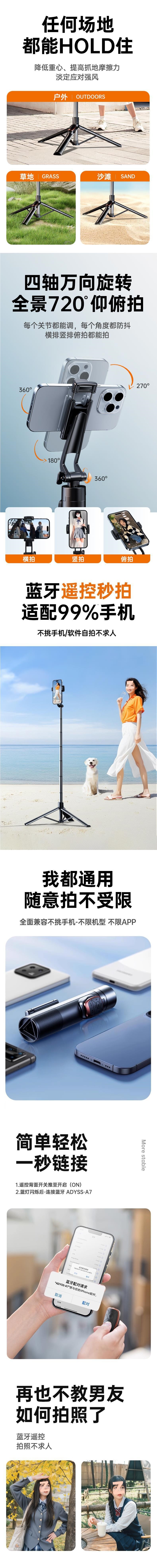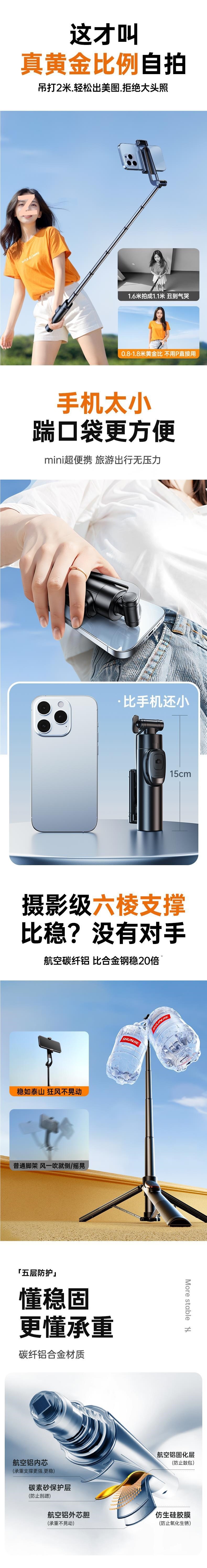 • 1.8m [뷰티모델] 완벽하게 적응, 휴대폰을 선택할 필요 없음★대형 광각 파노라마 사진★알루미늄 합금 텀블러
