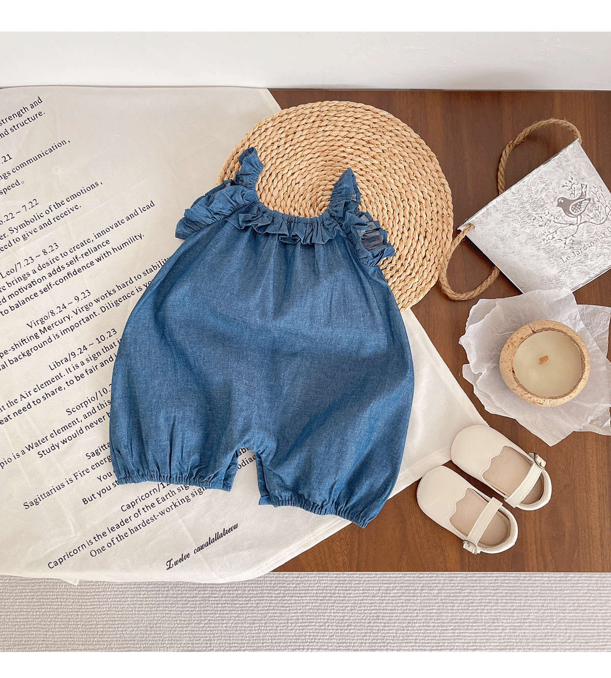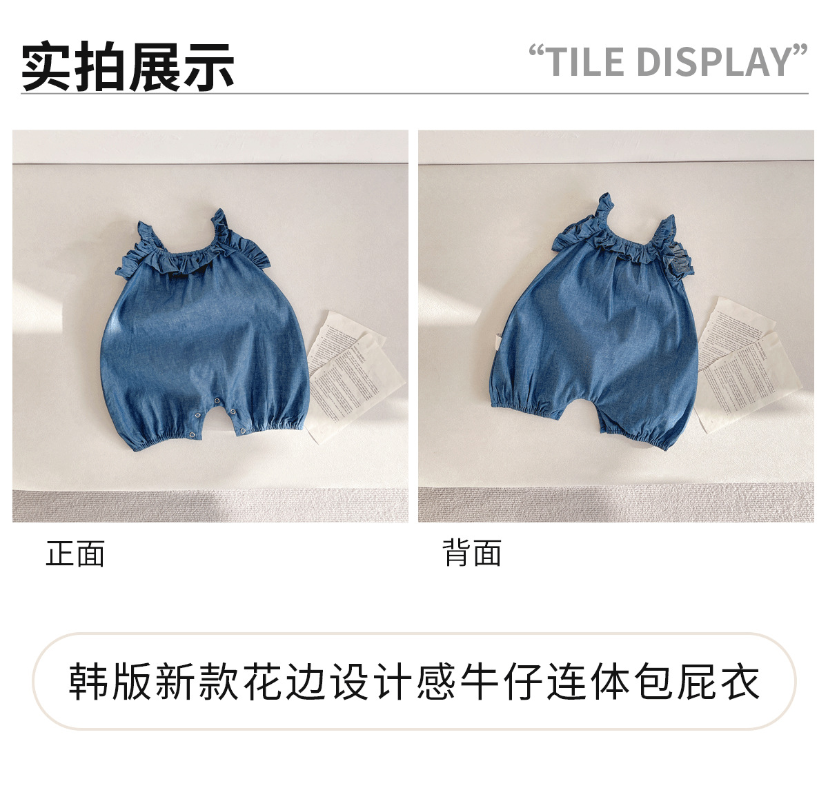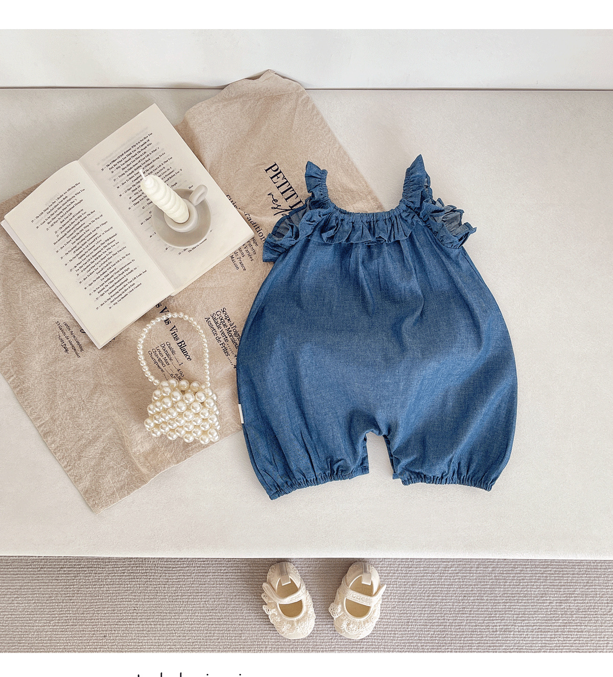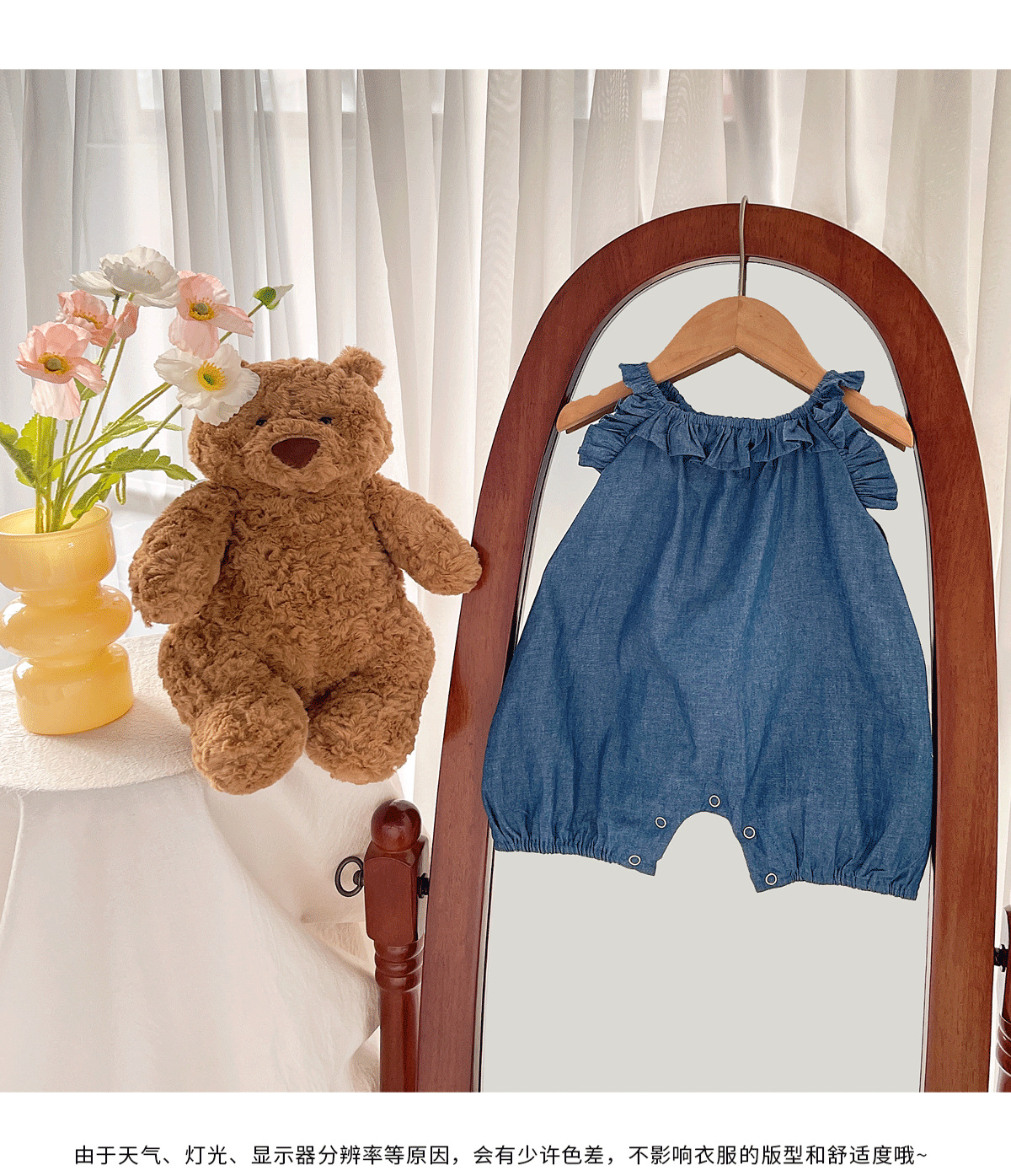 여름 새로운 아기 통기성 데님 등반 세트 귀여운 레이스 디자인 슬링 바디 귀여운 보물스토어 가기