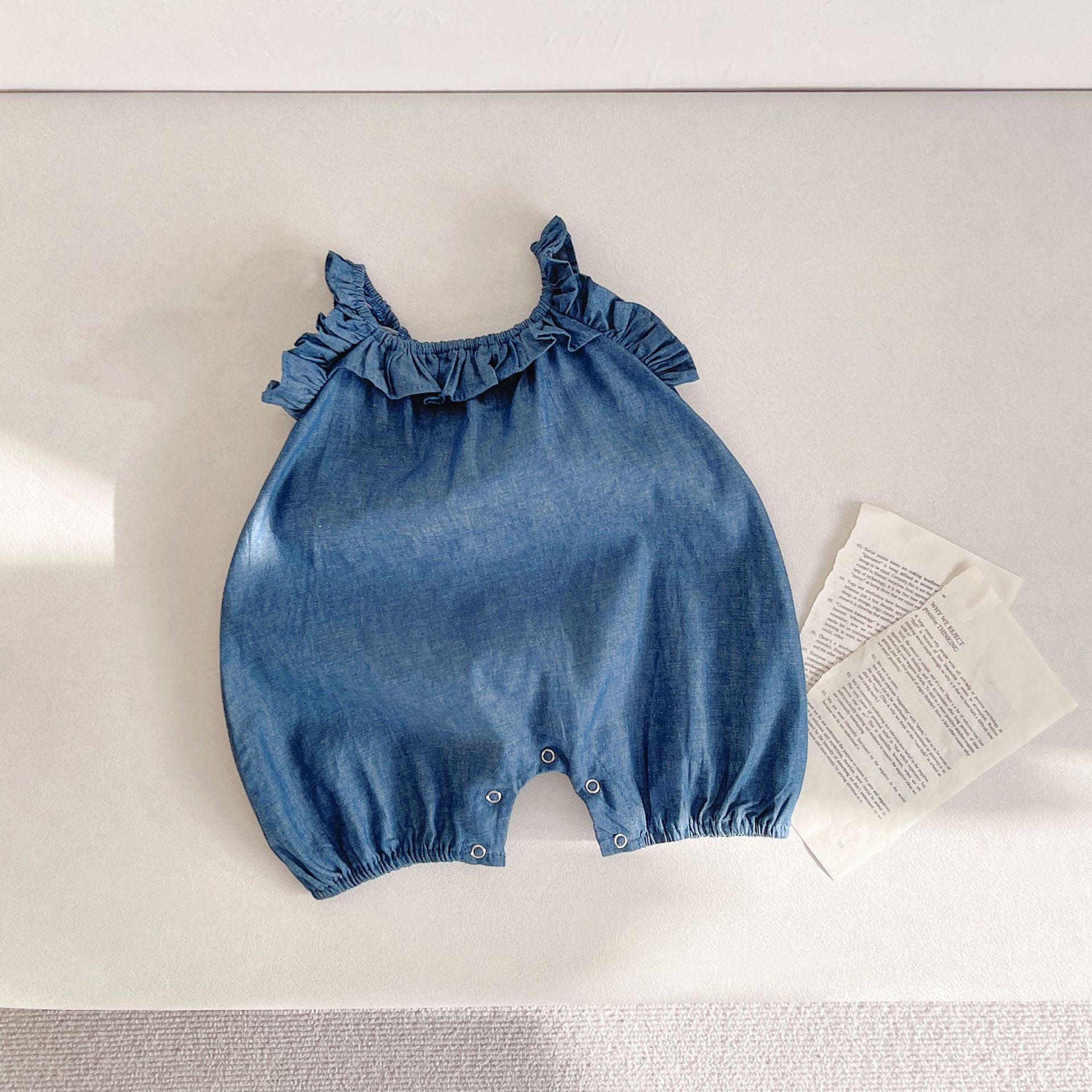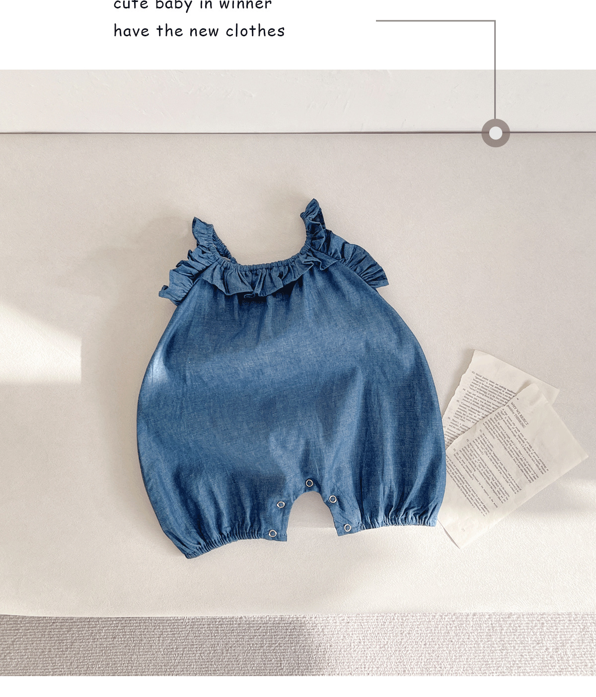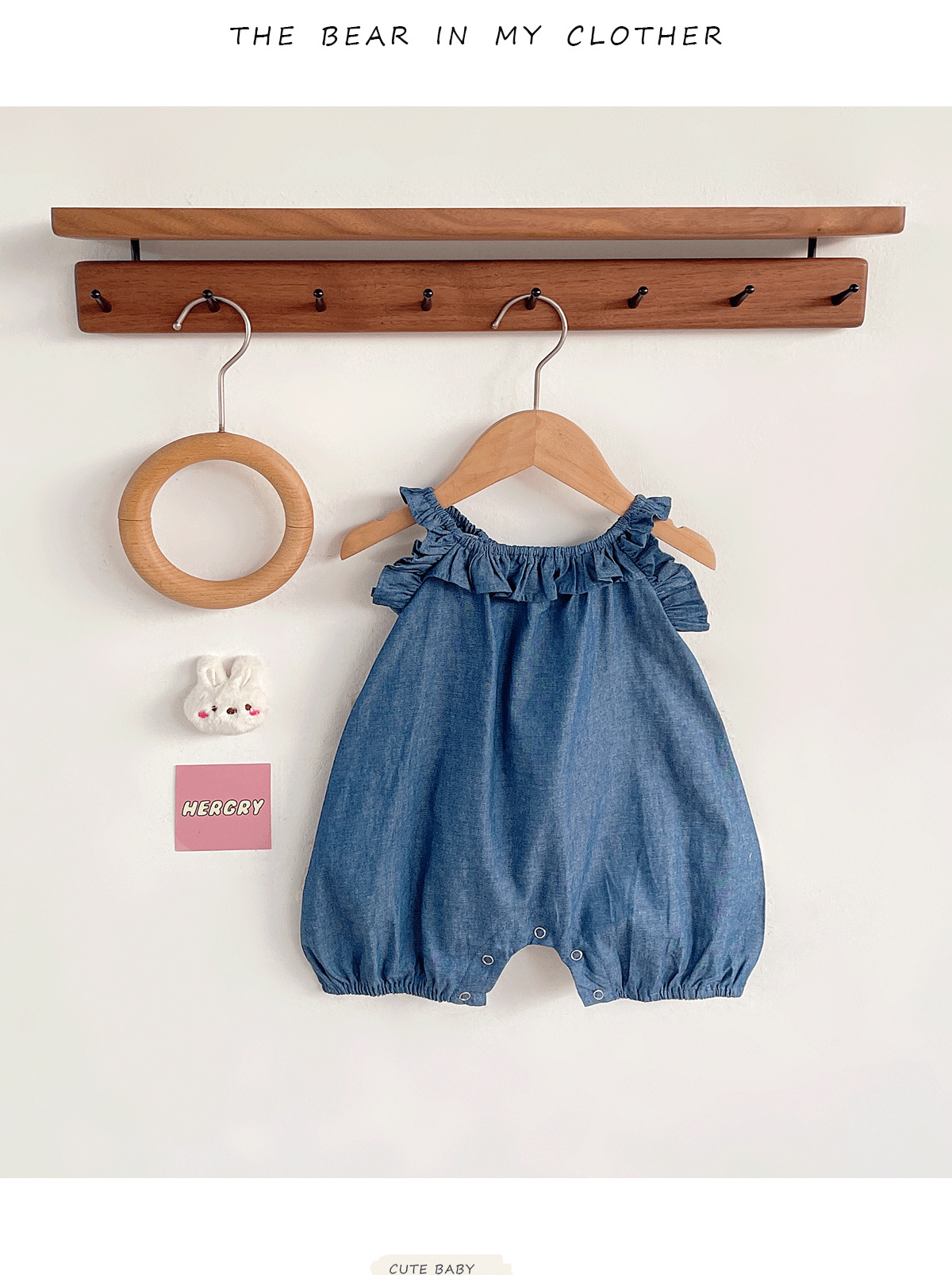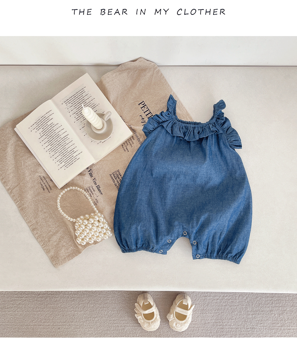 여름 새로운 아기 통기성 데님 등반 세트 귀여운 레이스 디자인 슬링 바디 귀여운 보물스토어 가기