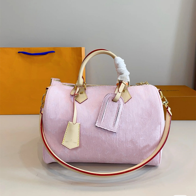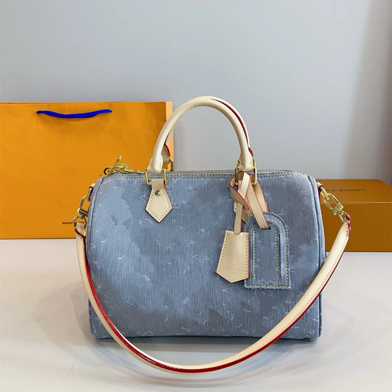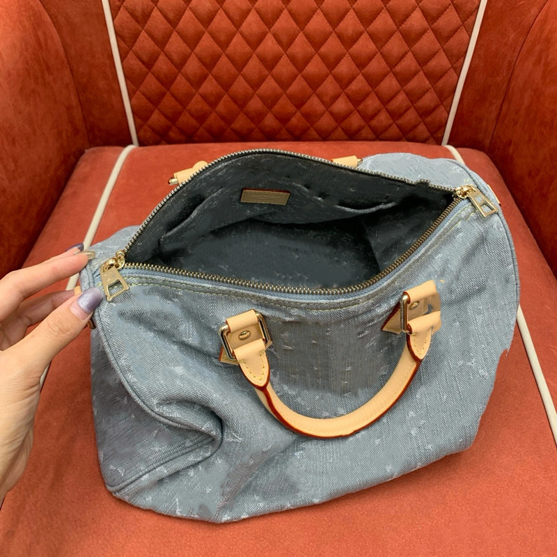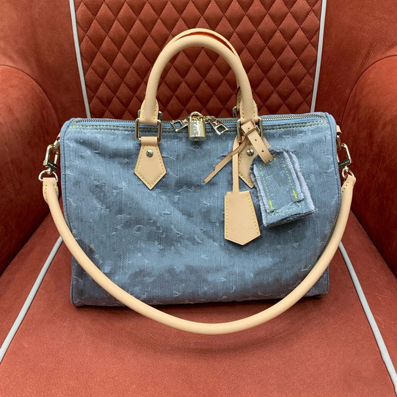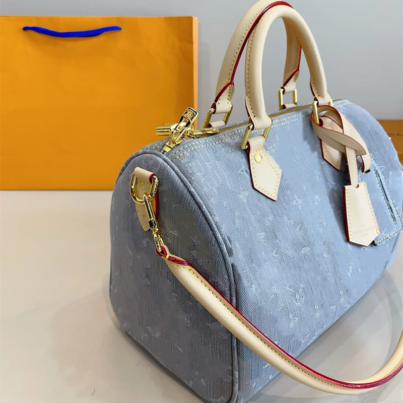 2025 새로운 보스턴 타닌 데님 대형 베개 가방 핸드백 여행 가방 어깨 유행 브랜드 크로스 바디 백스토어 가기