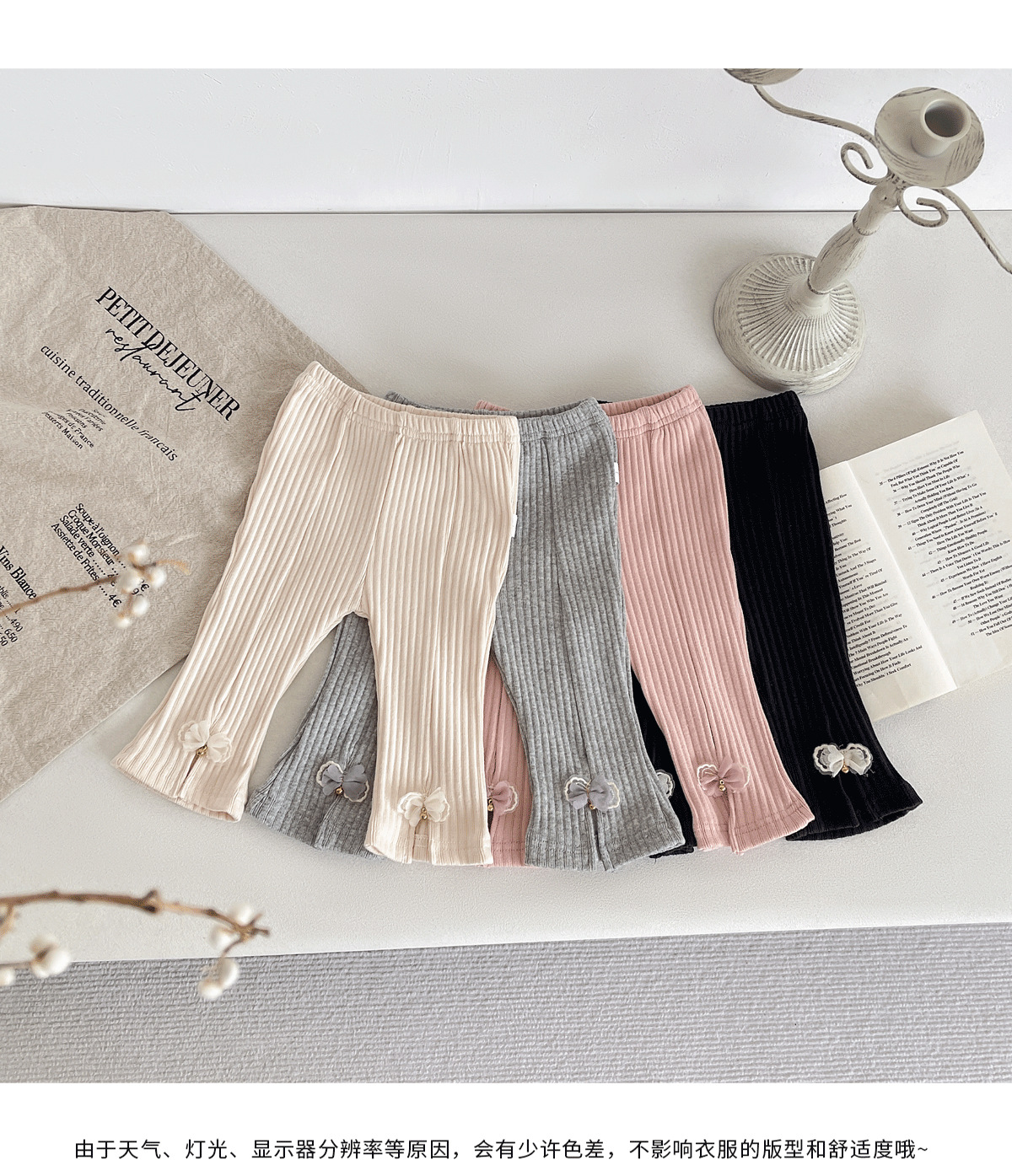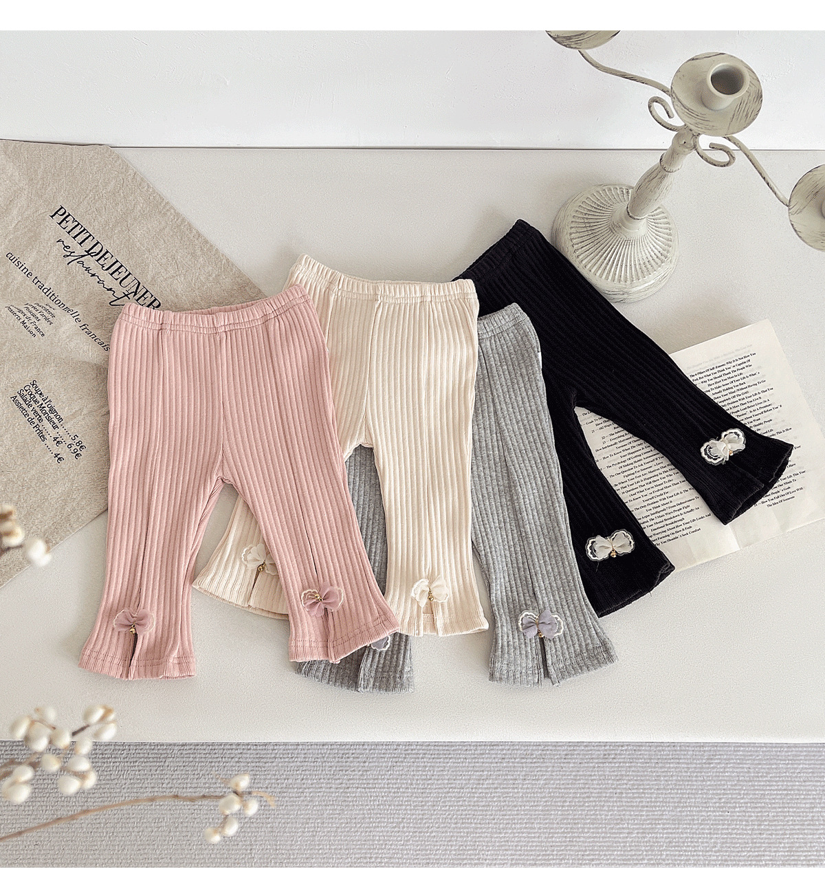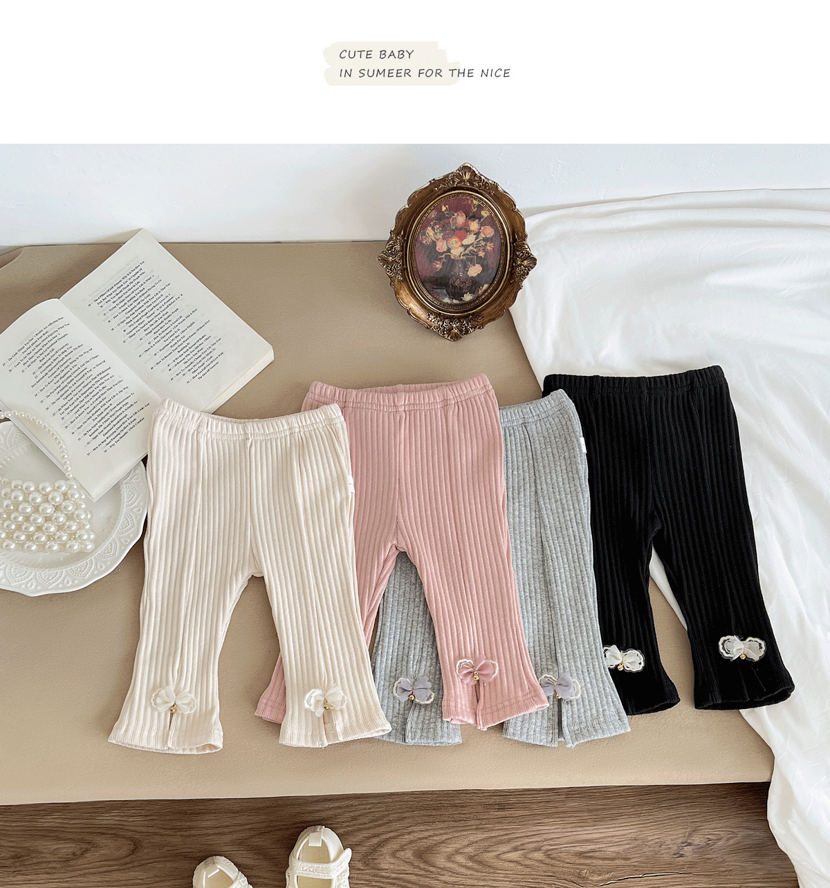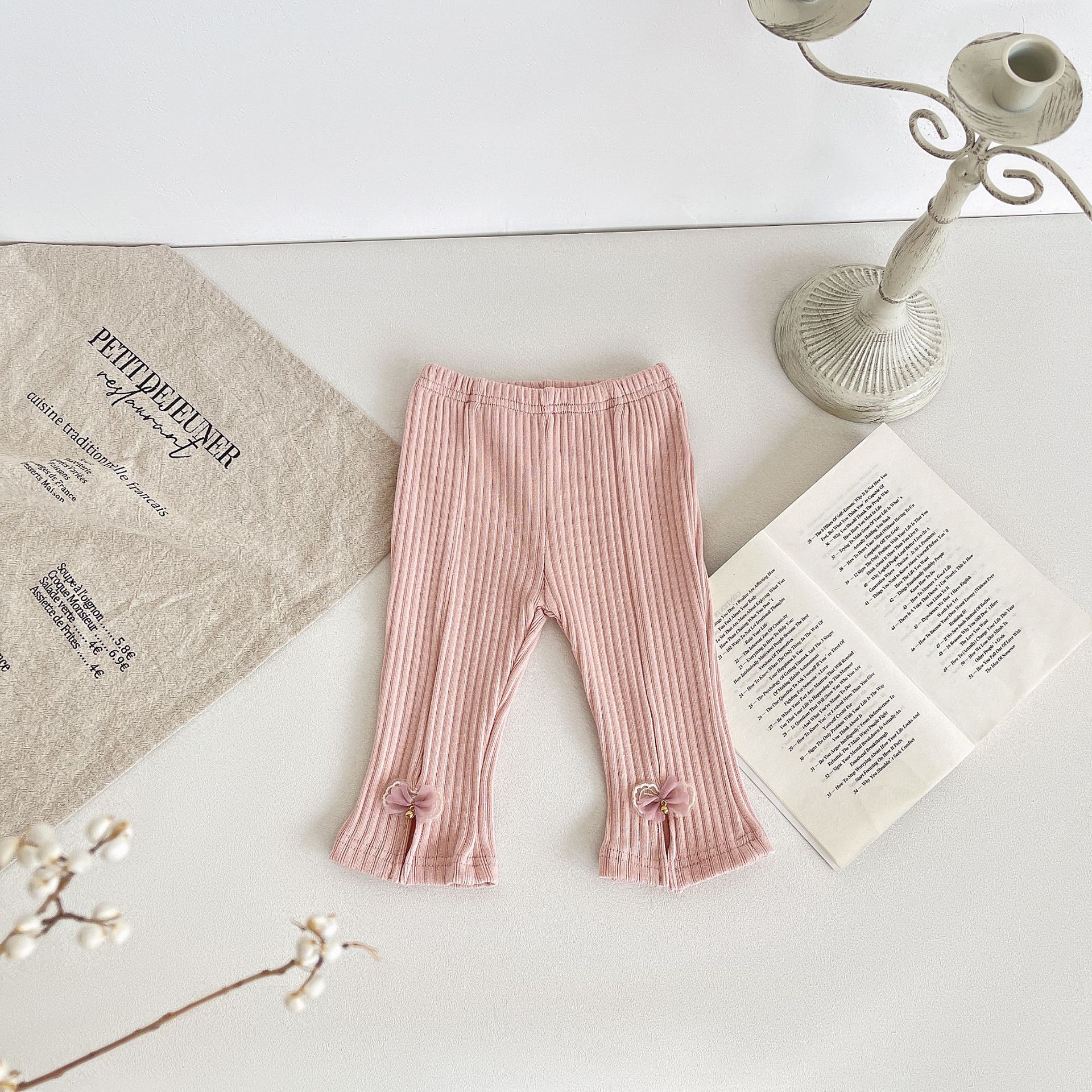2025 봄 새로운 한국 스타일 아기 구덩이 스트립 분할 나비 바지 아기 소녀의 스트레치 캐주얼 바지스토어 가기