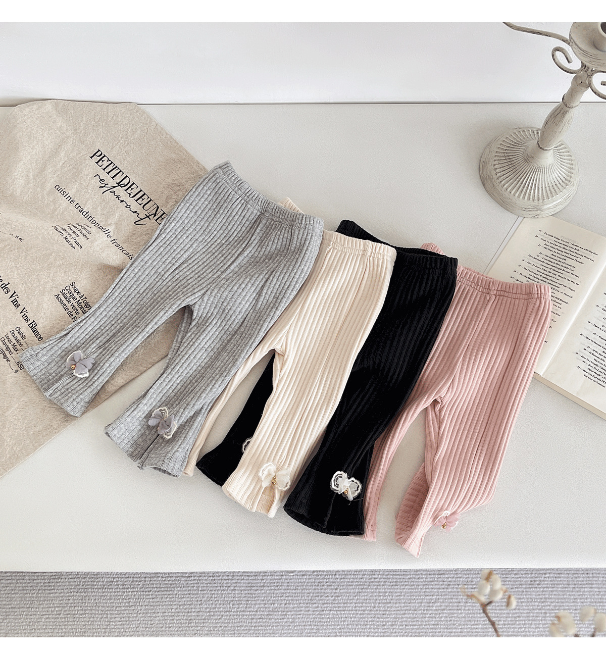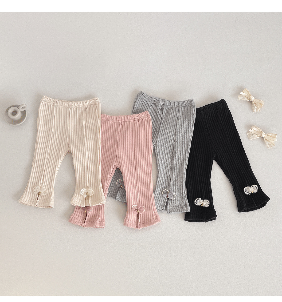 2025 봄 새로운 한국 스타일 아기 구덩이 스트립 분할 나비 바지 아기 소녀의 스트레치 캐주얼 바지