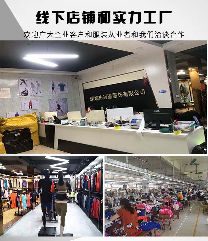 深圳市赛冠体育服饰有限公司创建于二0一0年,座落于广东省深圳市宝安区的美丽之乡-西乡。旗下制衣、绣花、印花制作三条流水线100多人,面积2500平米,设备有:自动裁床10条,电脑平车200台,电脑四线车300台,冚车150台,五线车100台,拉橡巾车50台,订四合扣车20台,钮门车20台,订扣车20台;员工稳定在500多人,年生产能力每间厂300万件,是一家生产规模较大的运动服装生产基地,本公司集开发、设计、生产、销售为一体的具有现代风格的专业运动服公司。公司拥有一流的运动服销售,设计专业团队人才;并引进国内外的设计、裁剪、生产、整烫等设备。