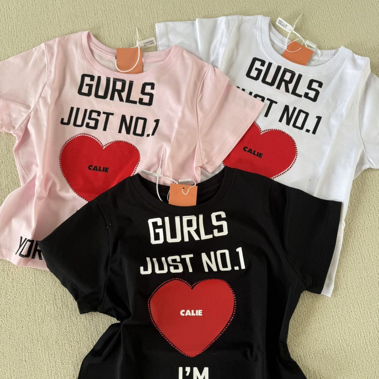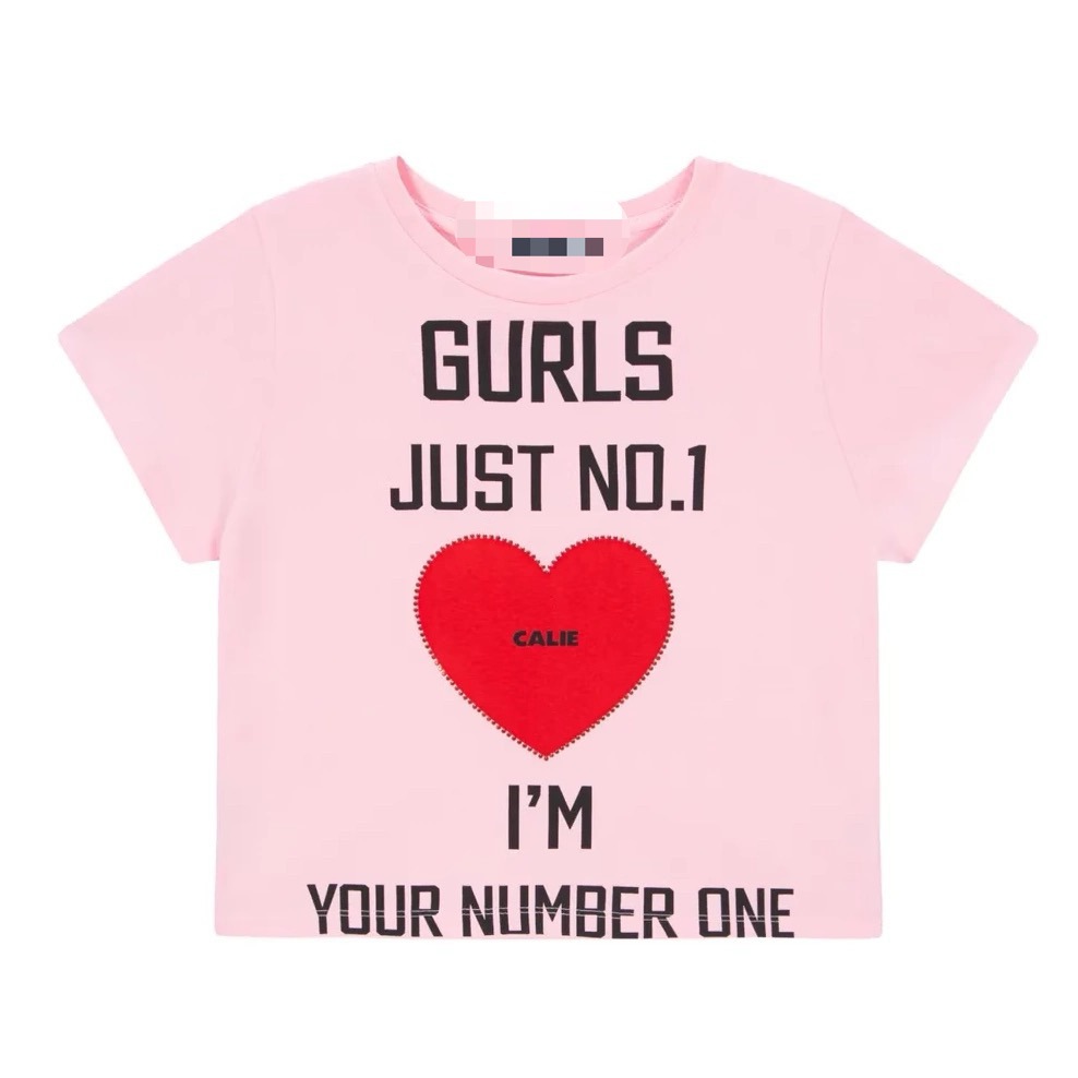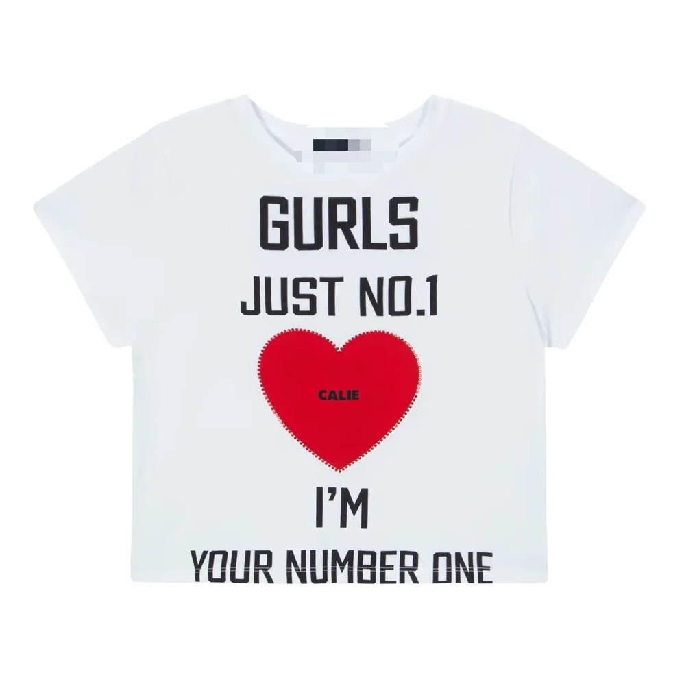 재고 있음 Li Hui Li와 동일한 한국 디자이너 트렌디 브랜드 러브 레터 프린트 반팔 티셔츠 여성용 탑