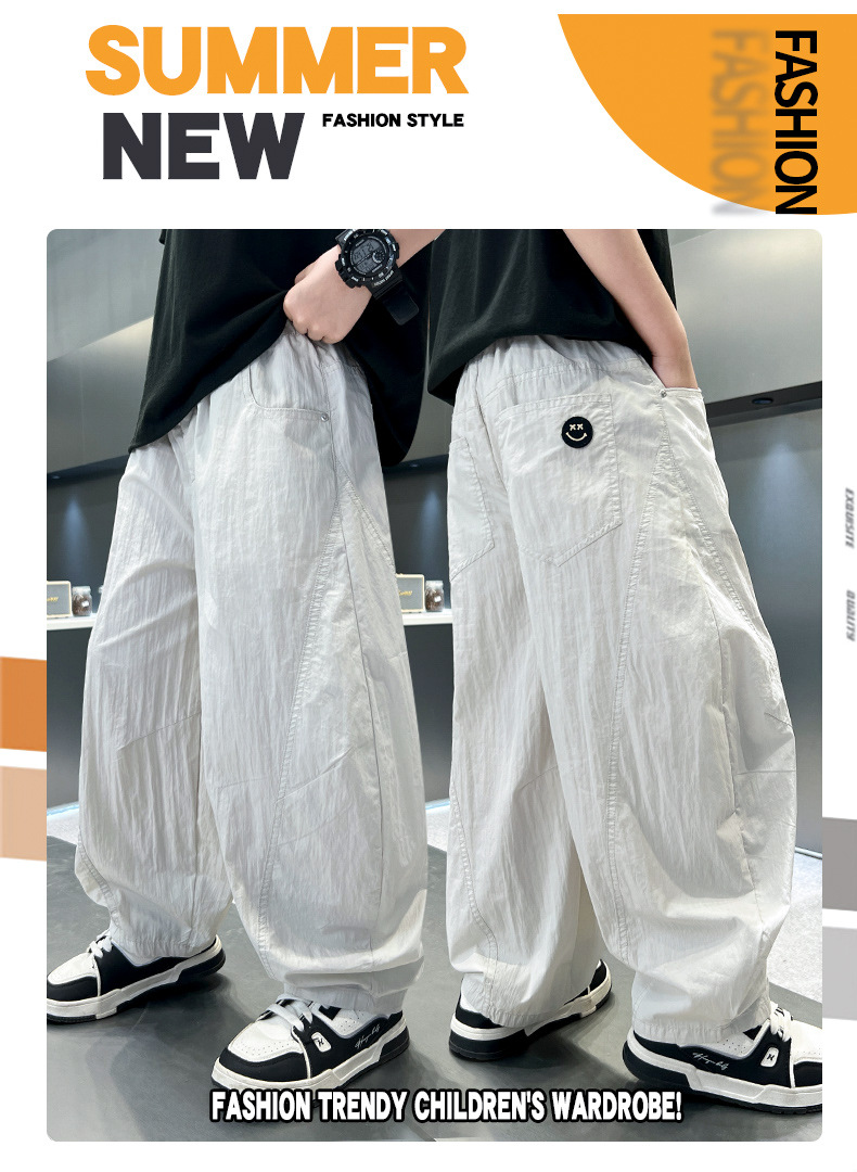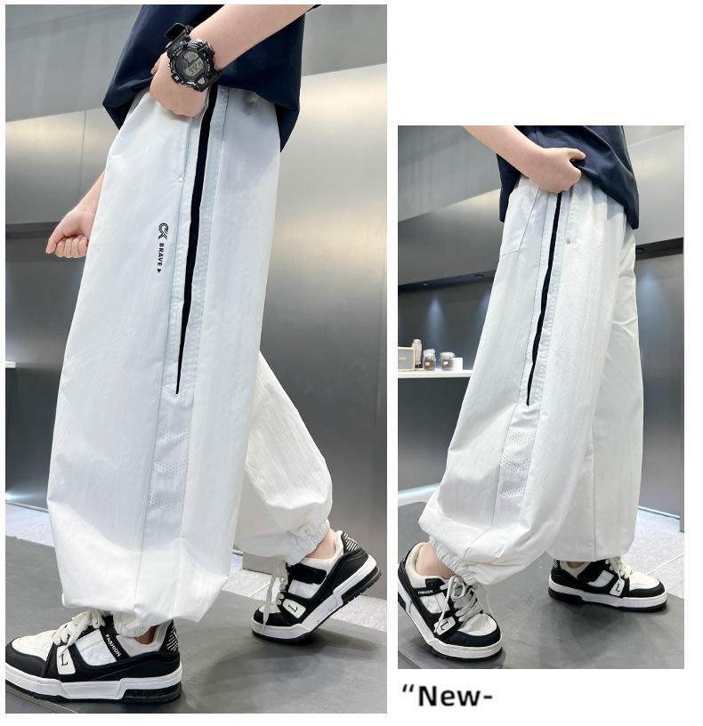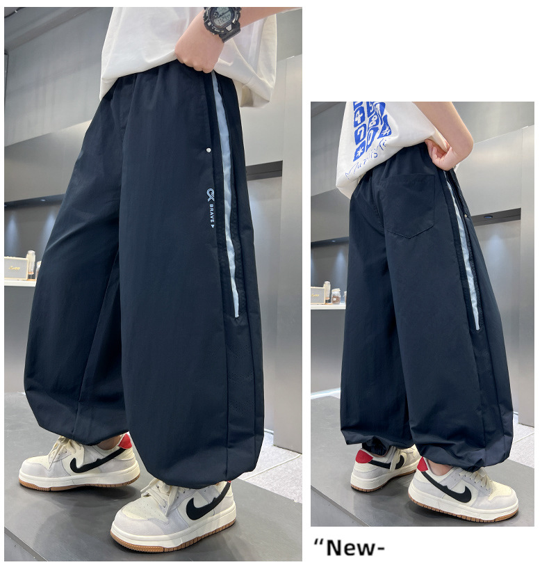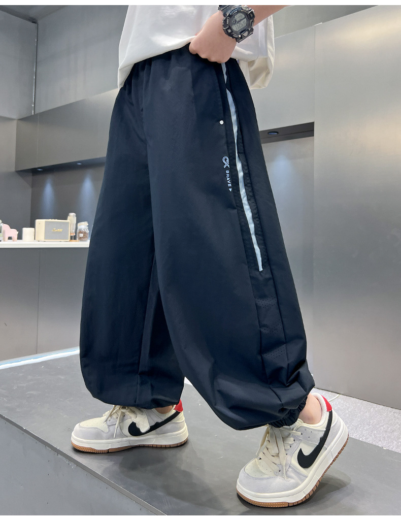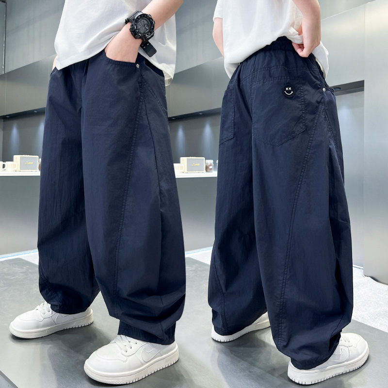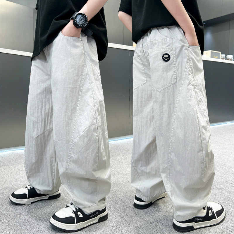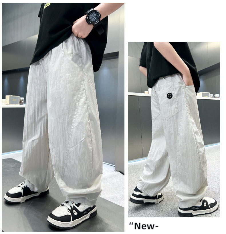 소년 바지 여름 얇은 2025 새로운 스타일 소년 캐주얼 및 잘 생긴 중대형 어린이 여름 옷 어린이 느슨한 모기 방지 바지스토어 가기