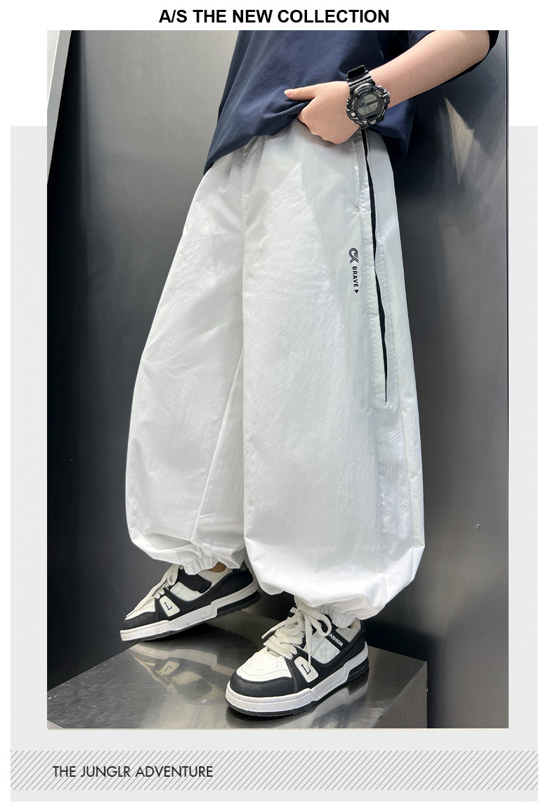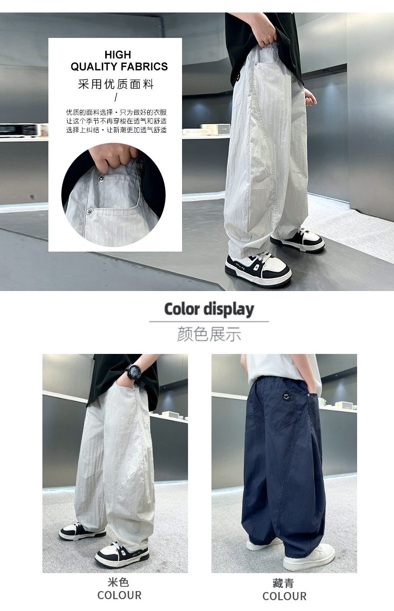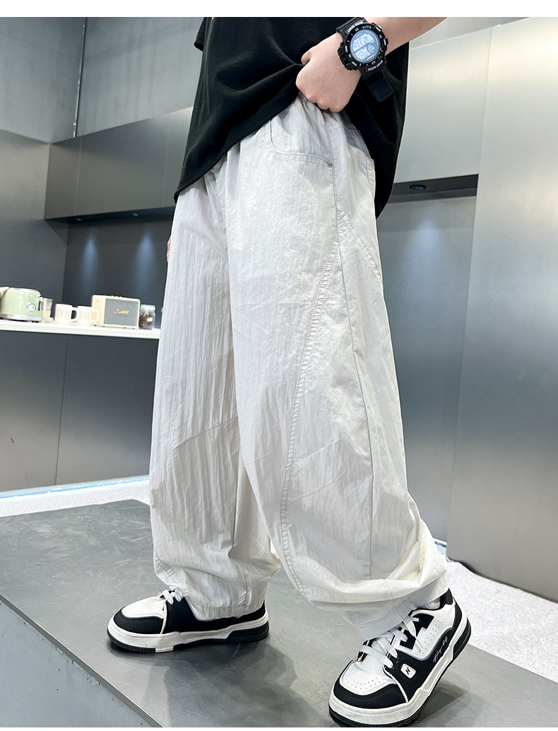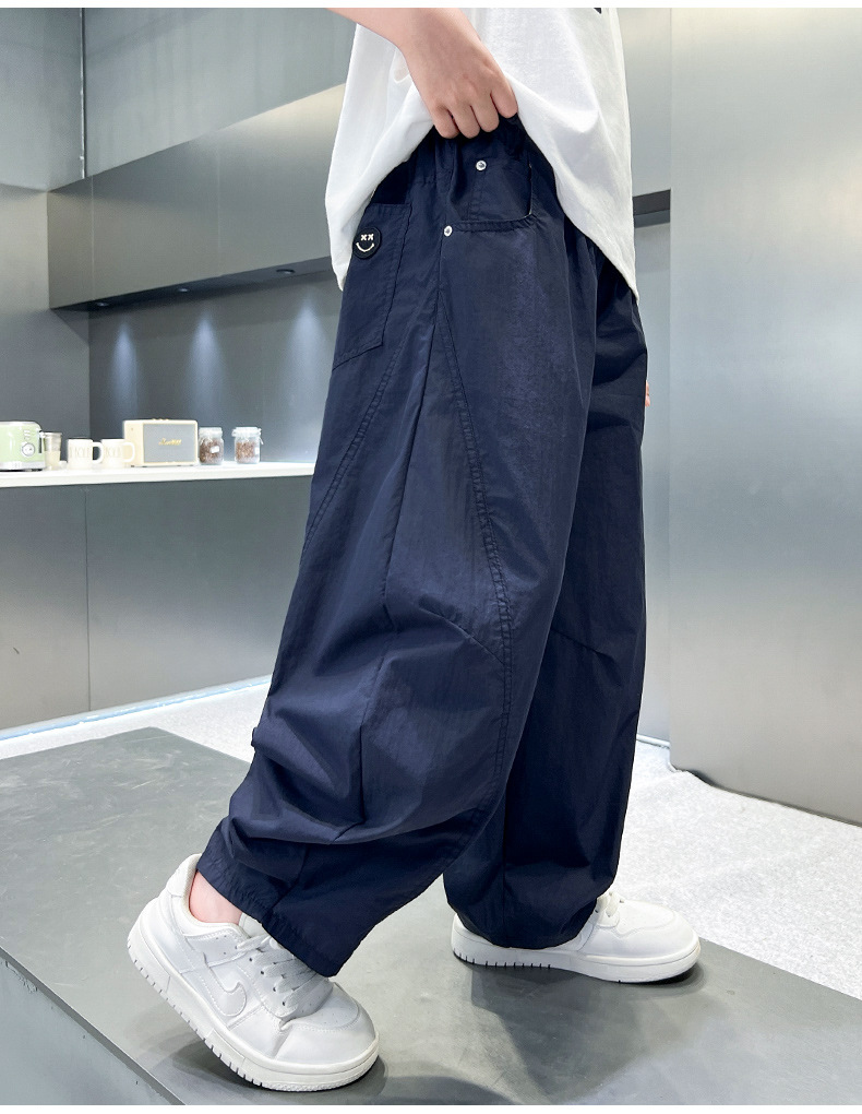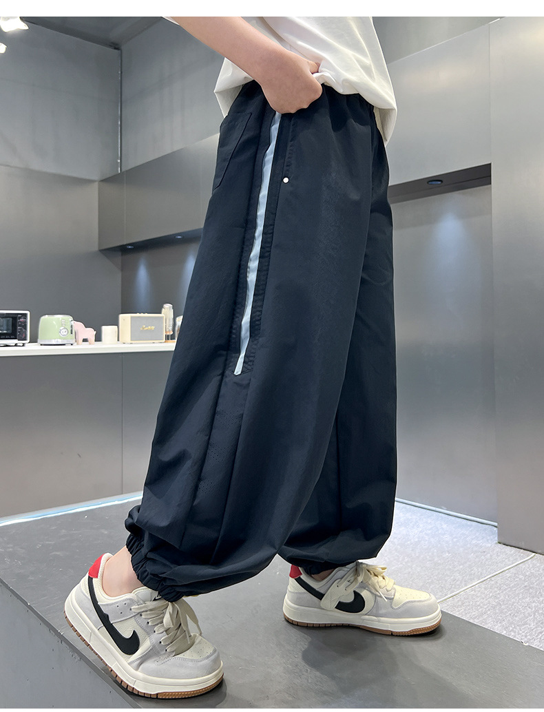 소년 바지 여름 얇은 2025 새로운 스타일 소년 캐주얼 및 잘 생긴 중대형 어린이 여름 옷 어린이 느슨한 모기 방지 바지스토어 가기