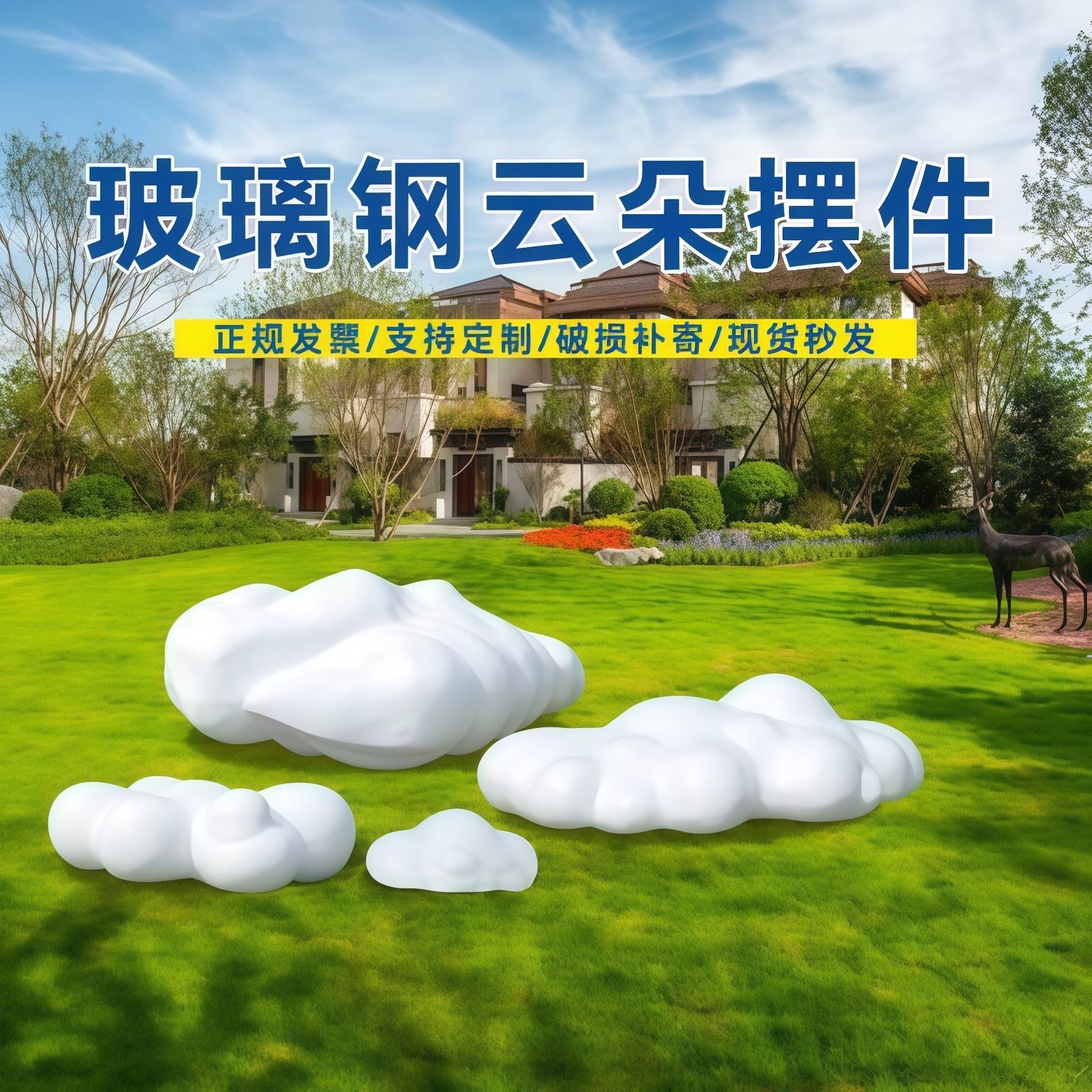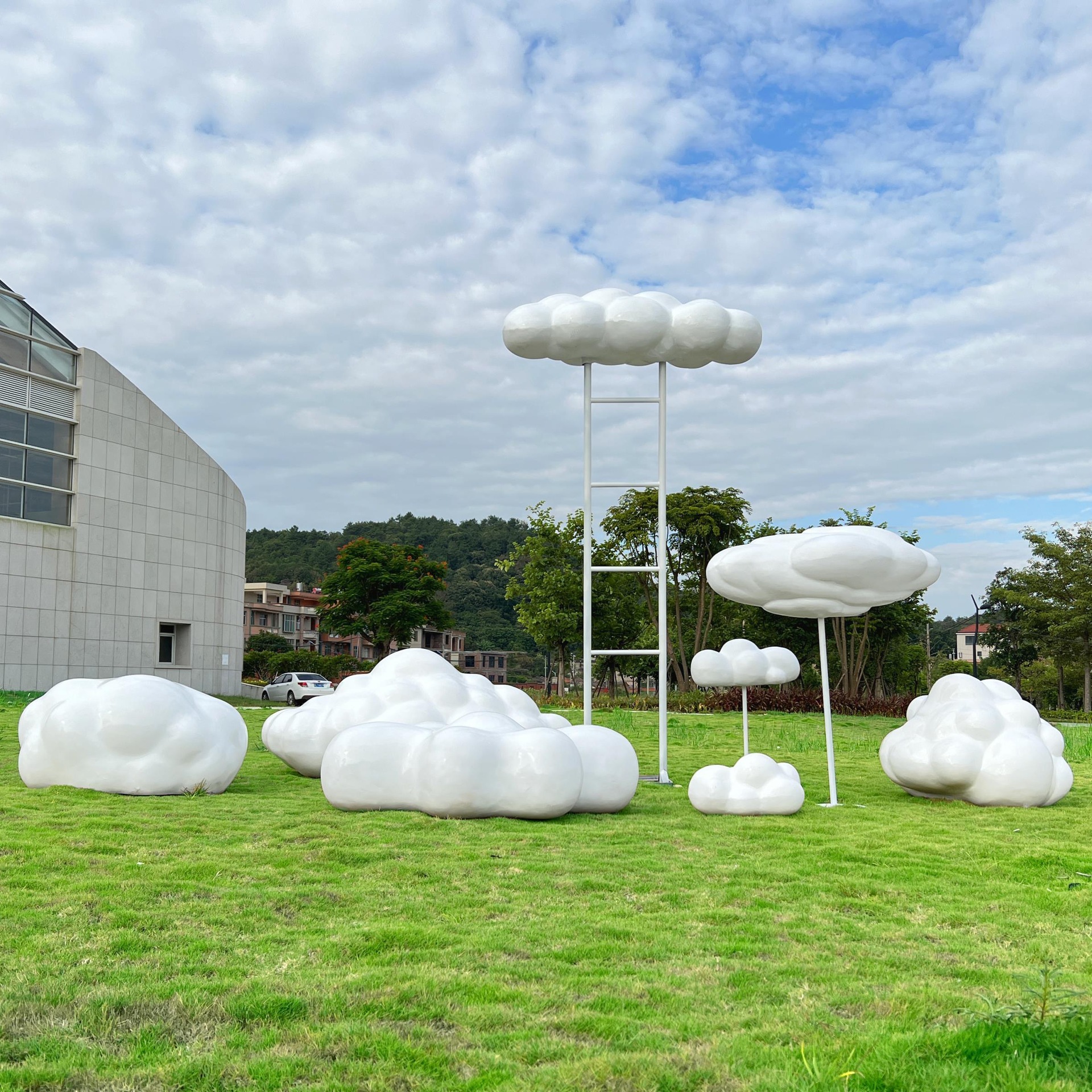 야외 시뮬레이션 유리 섬유 구름 조각 정원 풍경 판매 부서 크리 에이 티브 장식 잔디 광장 장식품