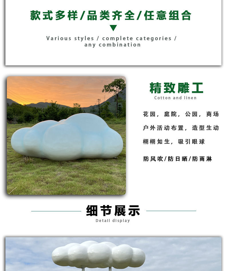 야외 시뮬레이션 유리 섬유 구름 조각 정원 풍경 판매 부서 크리 에이 티브 장식 잔디 광장 장식품스토어 가기