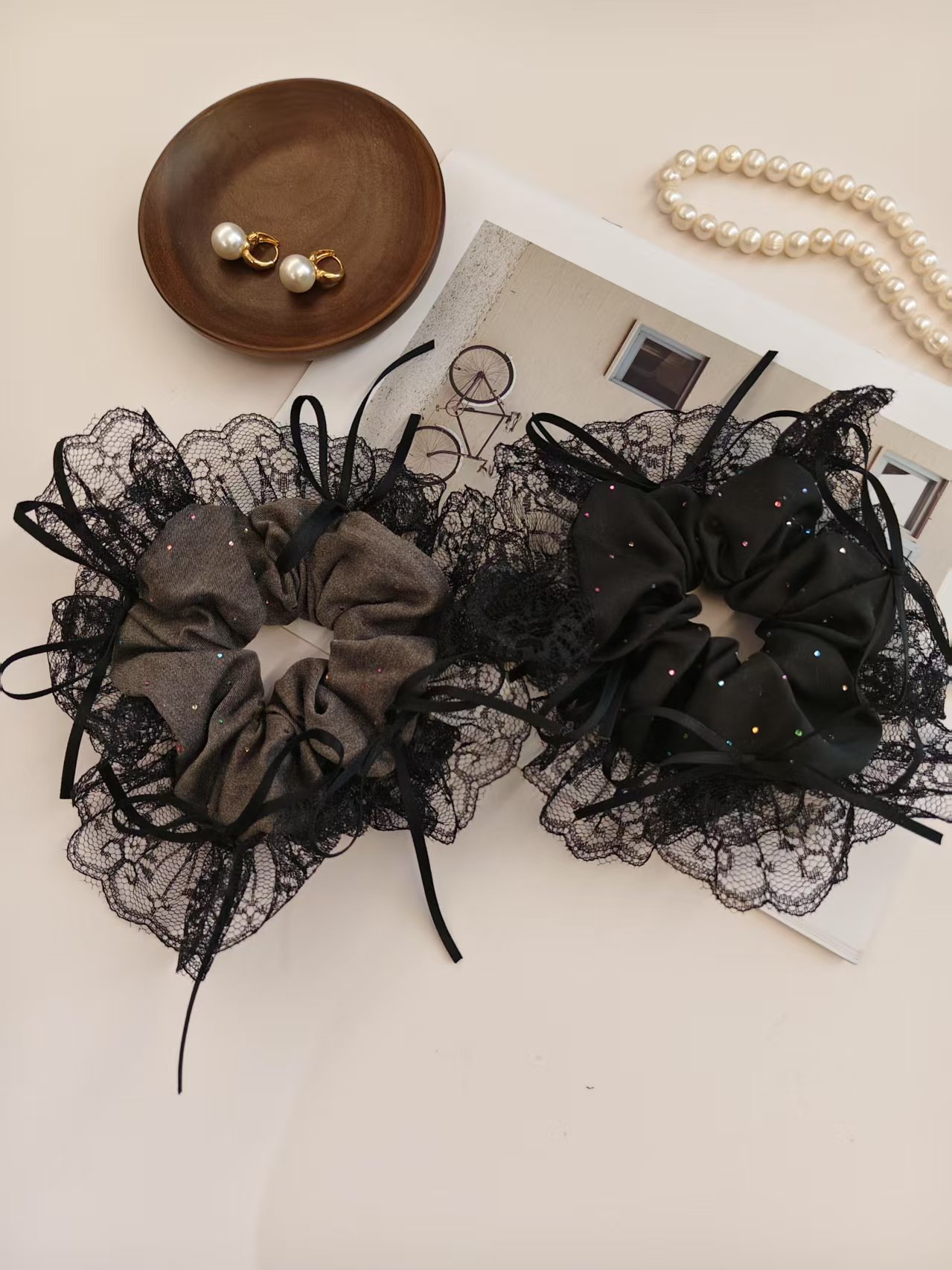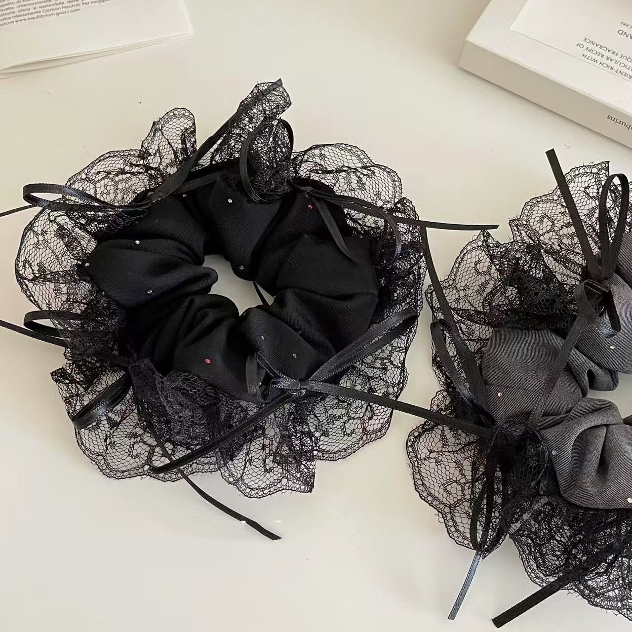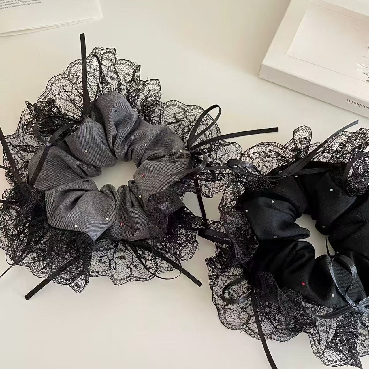 컬러 다이아몬드 블랙 레이스 활 대형 내장 헤어 링 틈새 하이 엔드 로우 포니 테일 헤드 로프 볼 헤드 여성용 헤어 액세서리