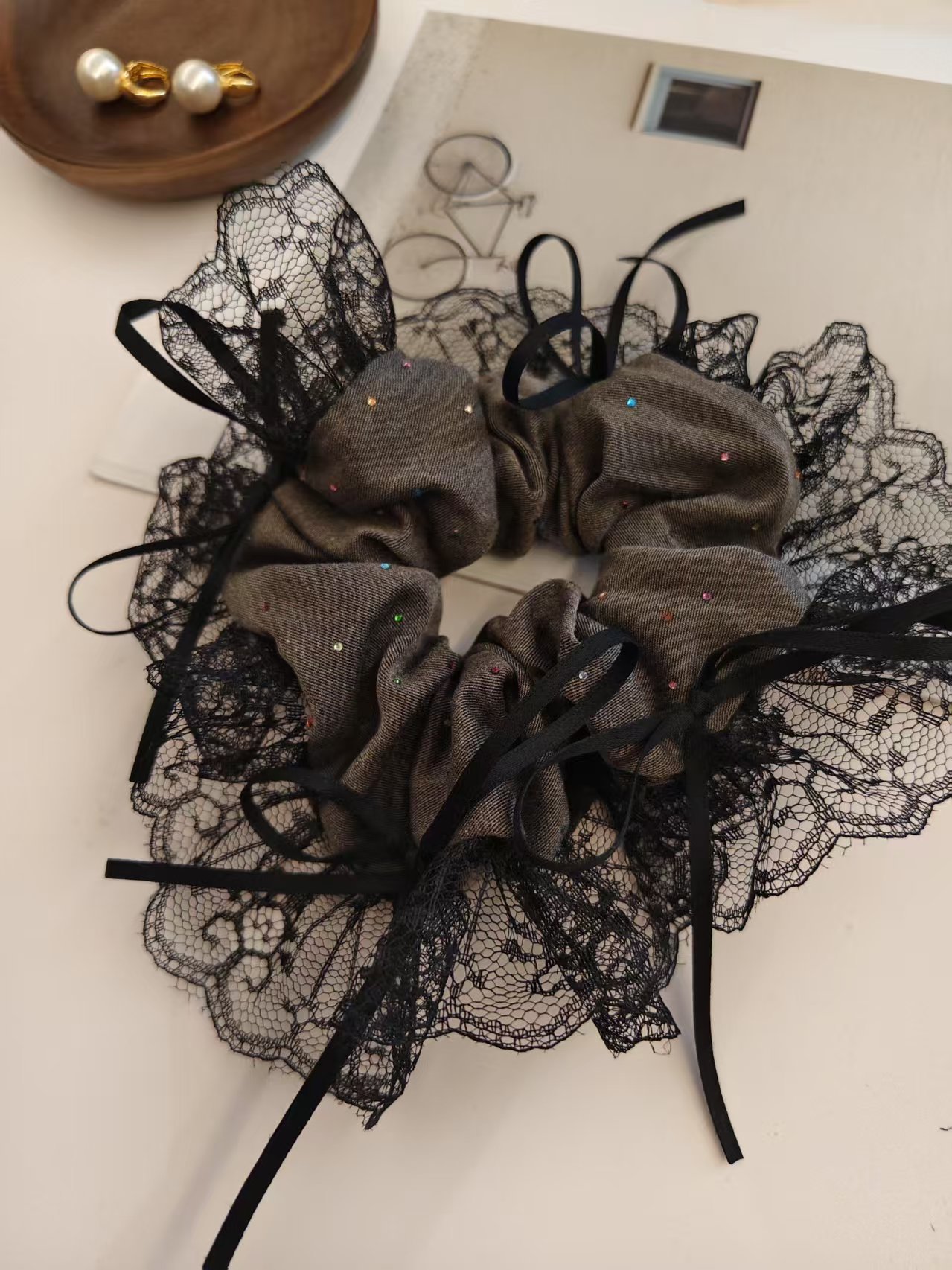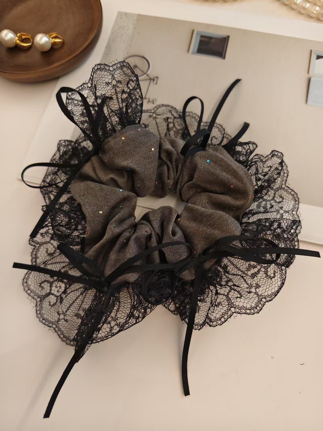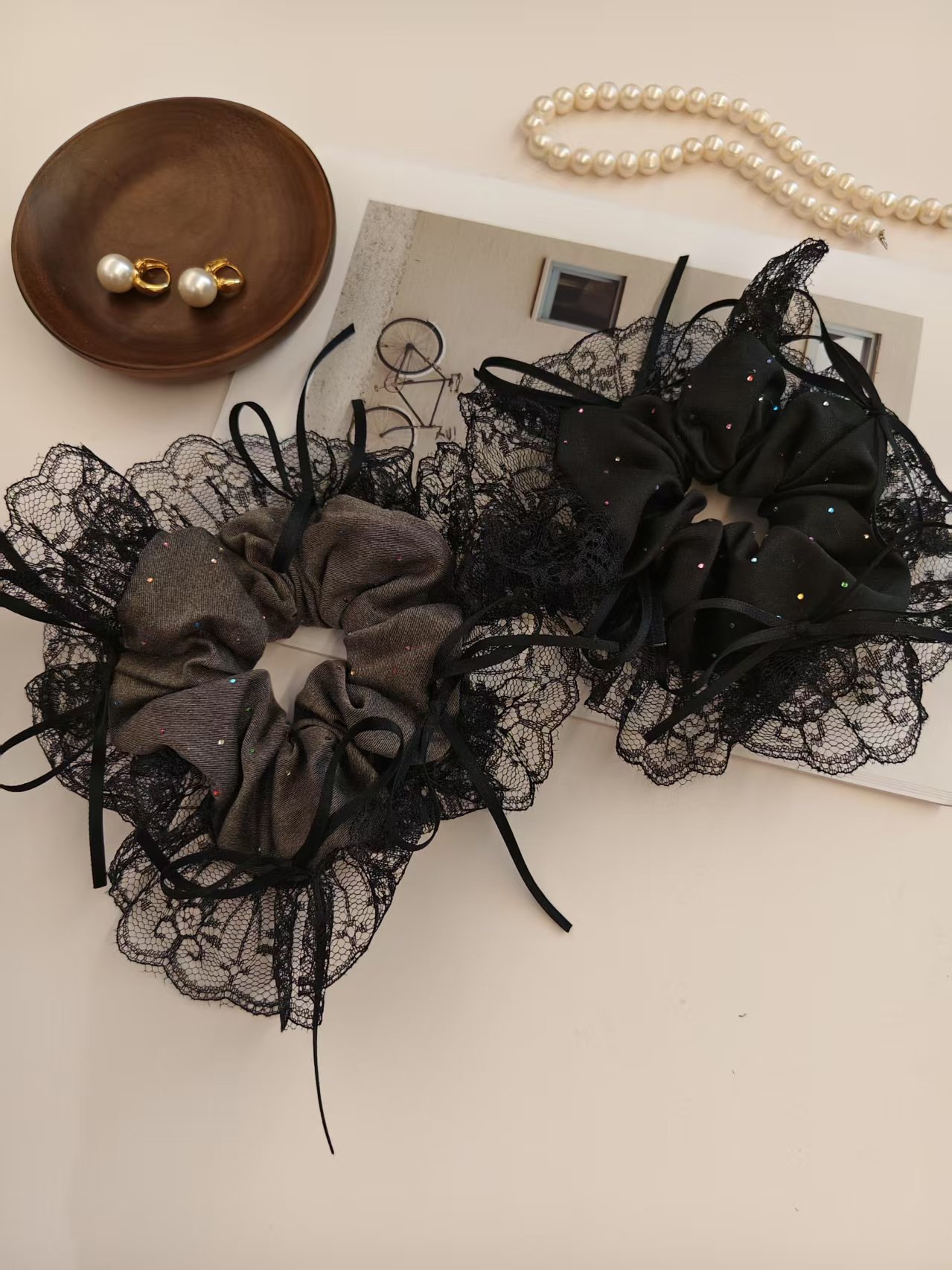 컬러 다이아몬드 블랙 레이스 활 대형 내장 헤어 링 틈새 하이 엔드 로우 포니 테일 헤드 로프 볼 헤드 여성용 헤어 액세서리