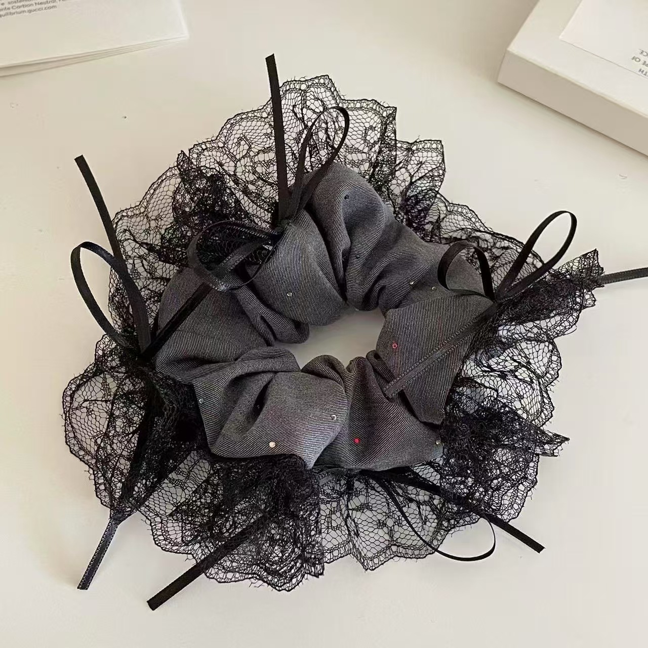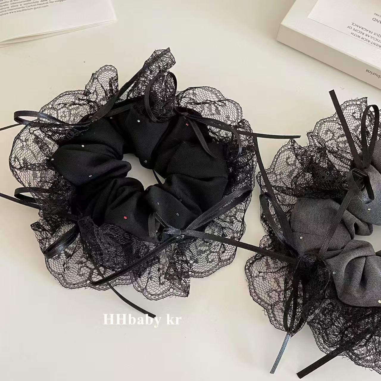 컬러 다이아몬드 블랙 레이스 활 대형 내장 헤어 링 틈새 하이 엔드 로우 포니 테일 헤드 로프 볼 헤드 여성용 헤어 액세서리스토어 가기
